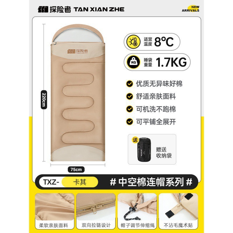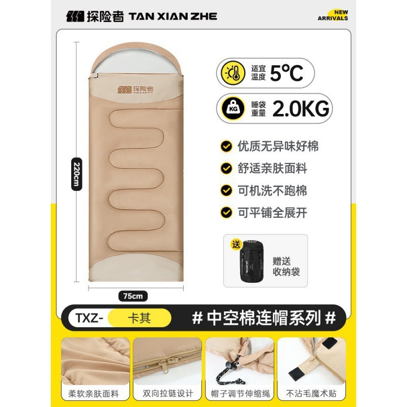 探险者睡袋户外成人儿童隔脏加厚防寒冬季露营野营单双人被子拼接