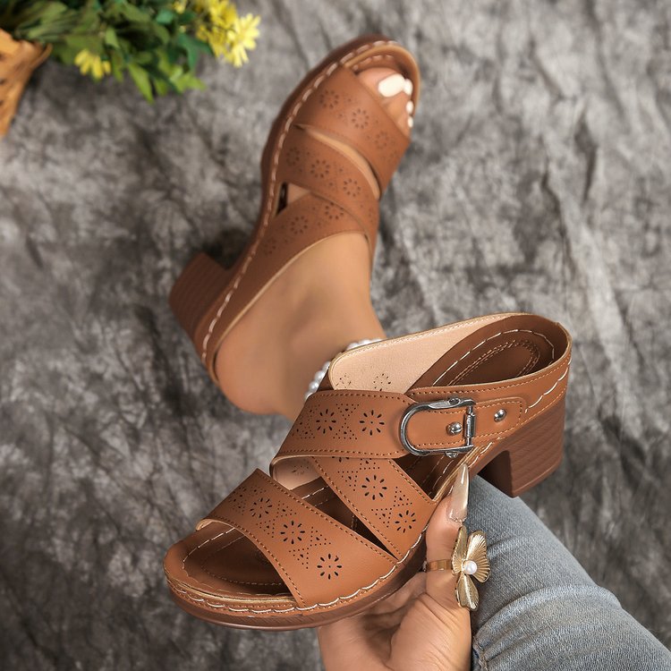 2025 유럽과 미국 대외 무역 대형 중공 두꺼운 밑창 슬리퍼 여성 복고풍 웨지 힐 경량 비치 샌들 도매스토어 가기