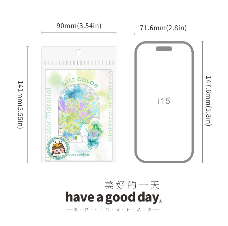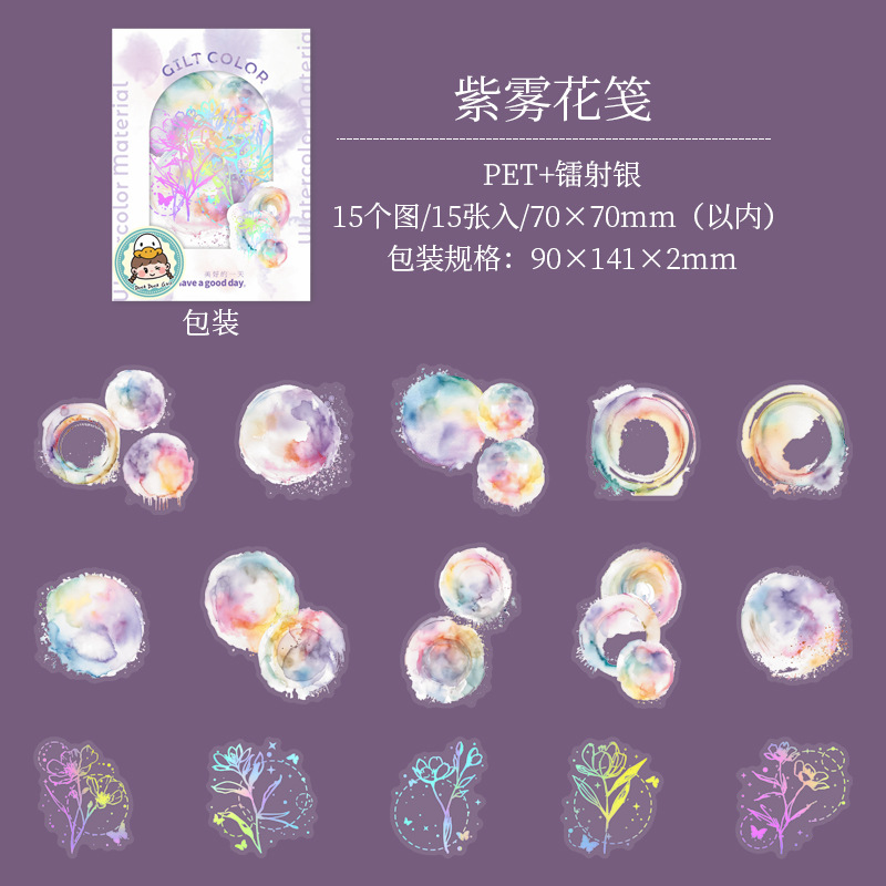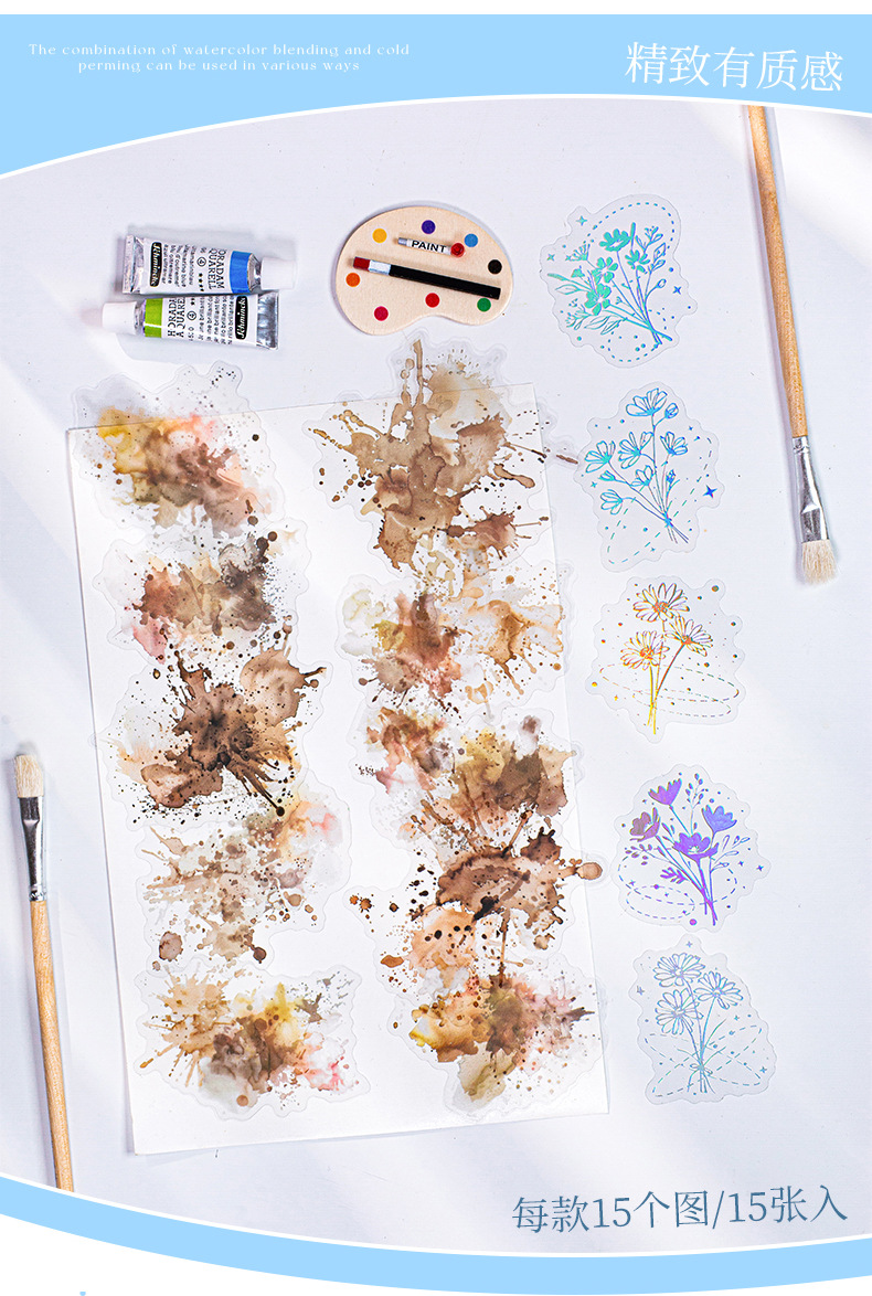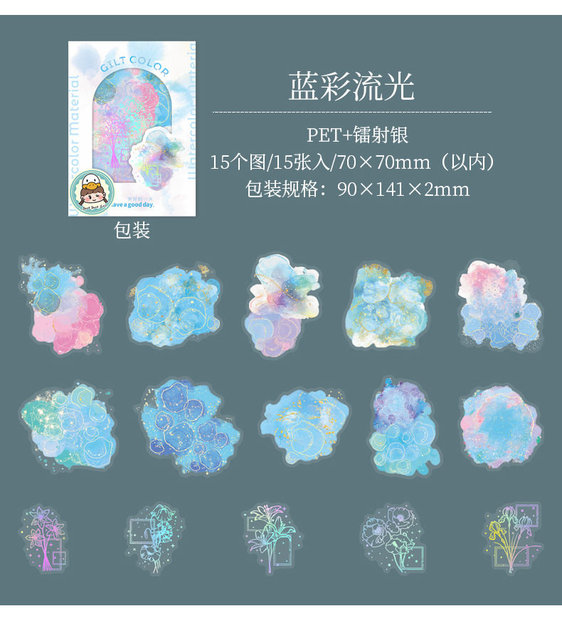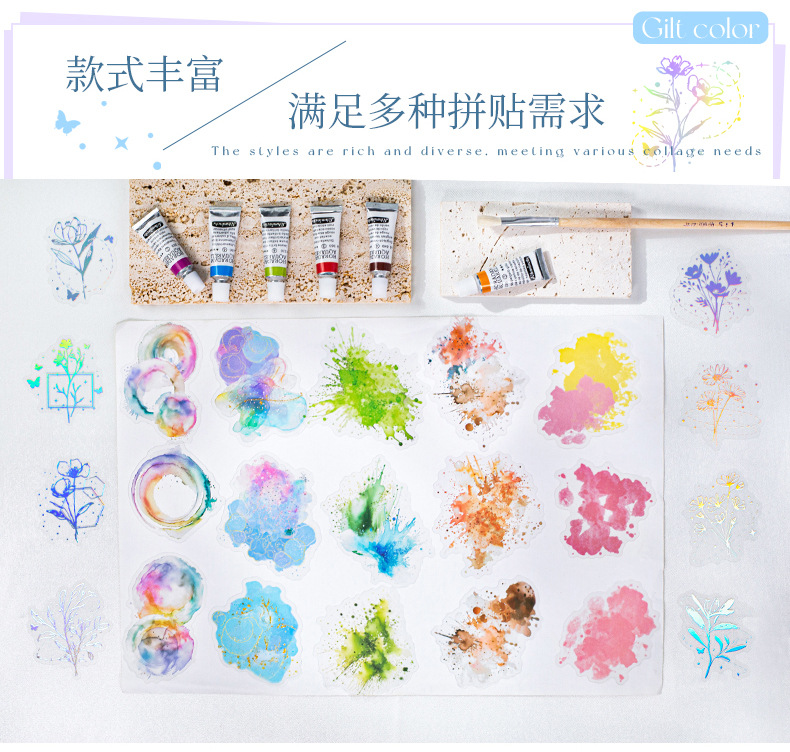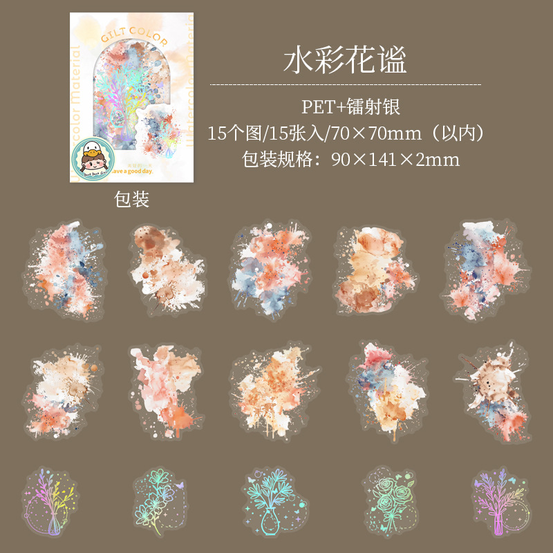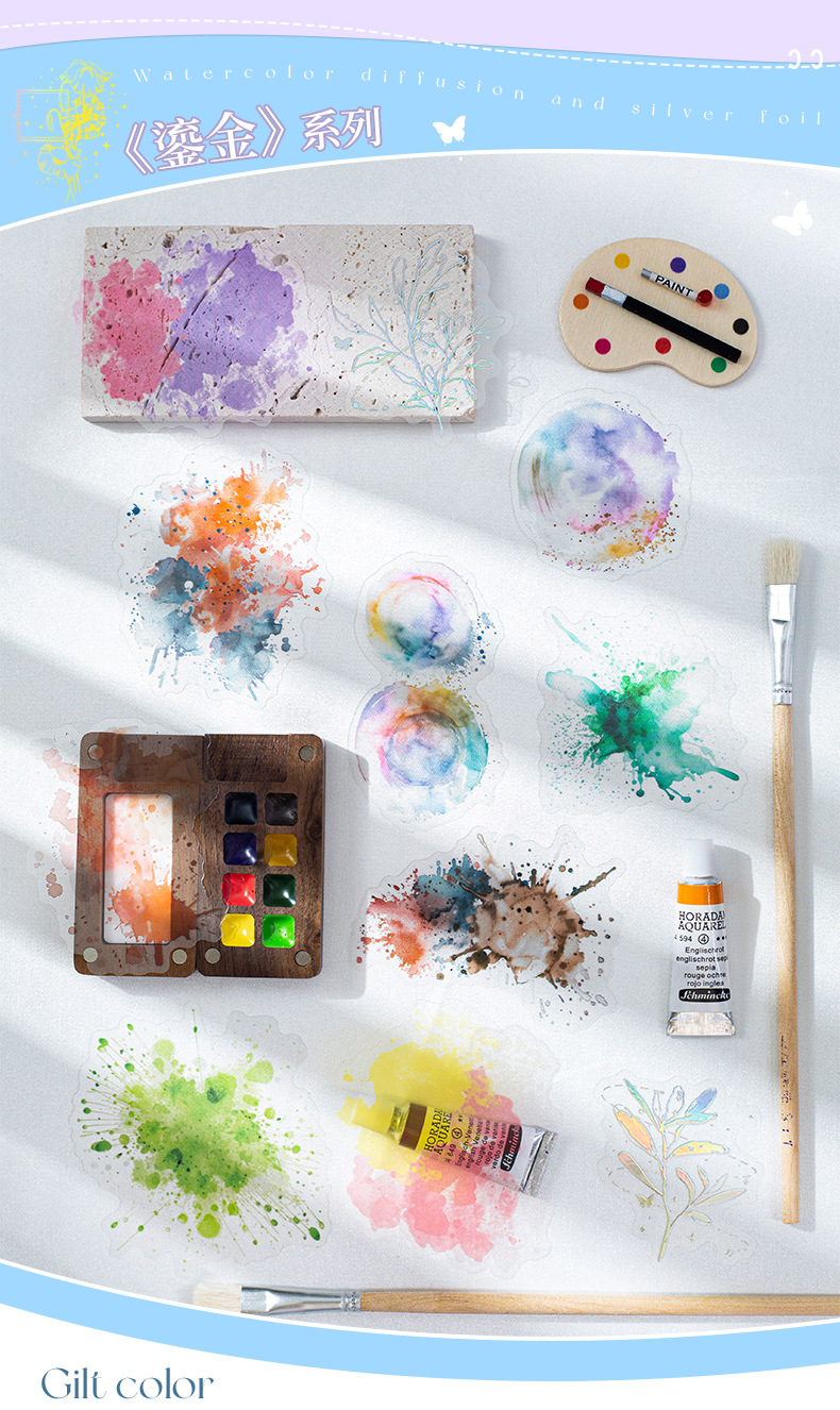 아름다운 날 골드 시리즈 수채화 헤일로 염료 뜨거운 실버 애완 동물 스티커 손 계정 장식 콜라주 소재 15 6