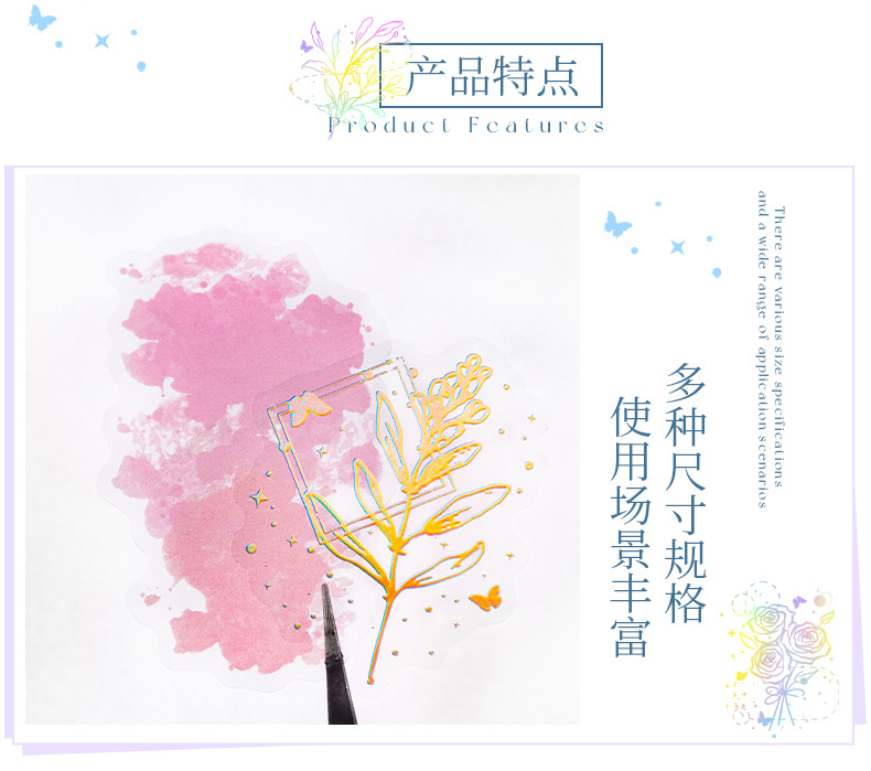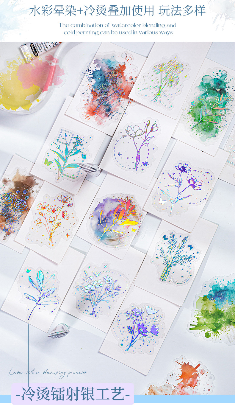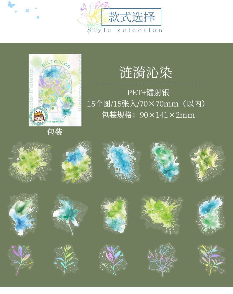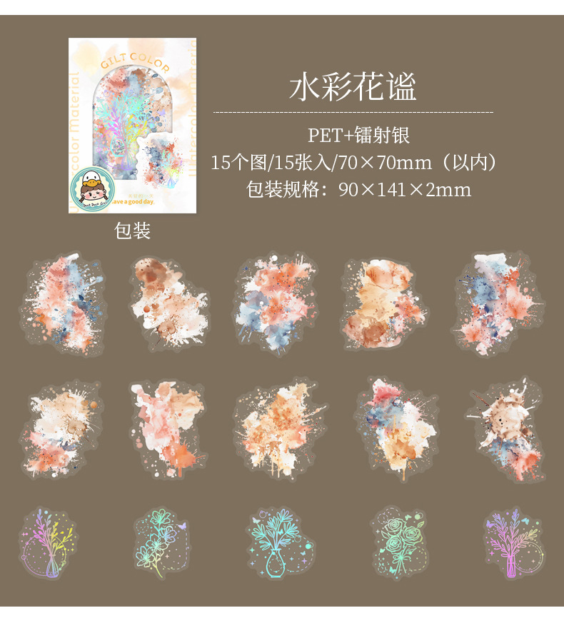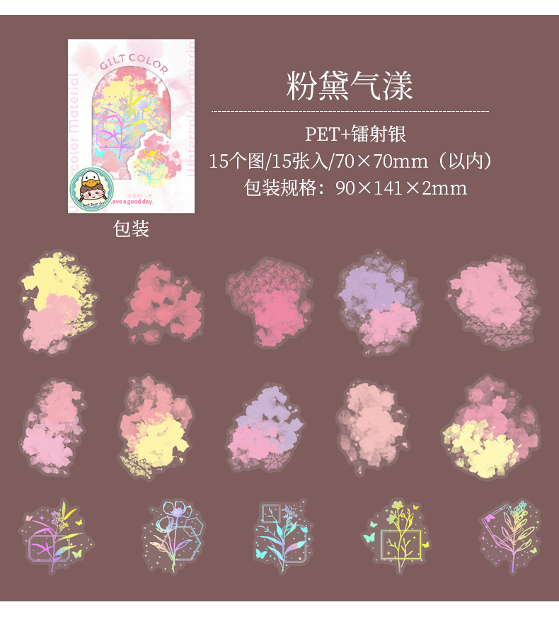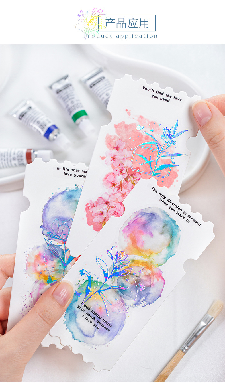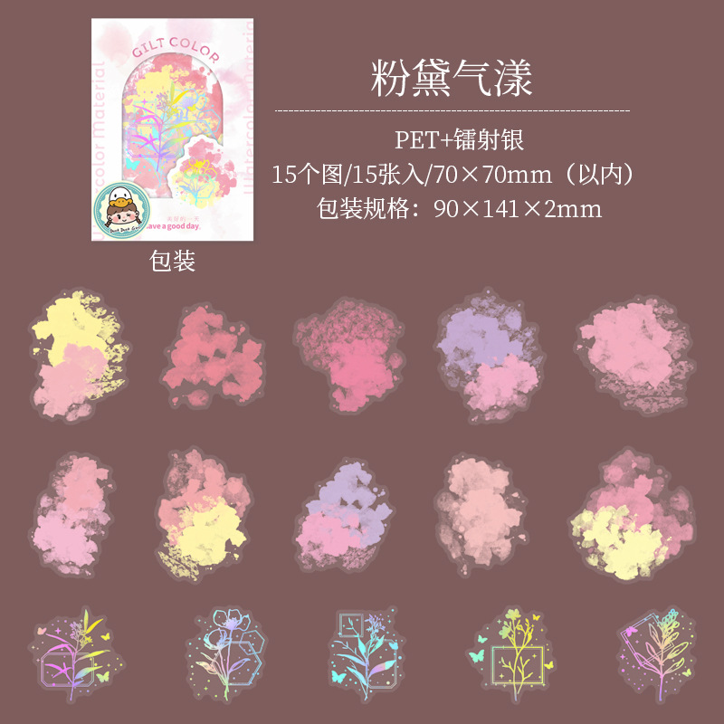 아름다운 날 골드 시리즈 수채화 헤일로 염료 뜨거운 실버 애완 동물 스티커 손 계정 장식 콜라주 소재 15 6
