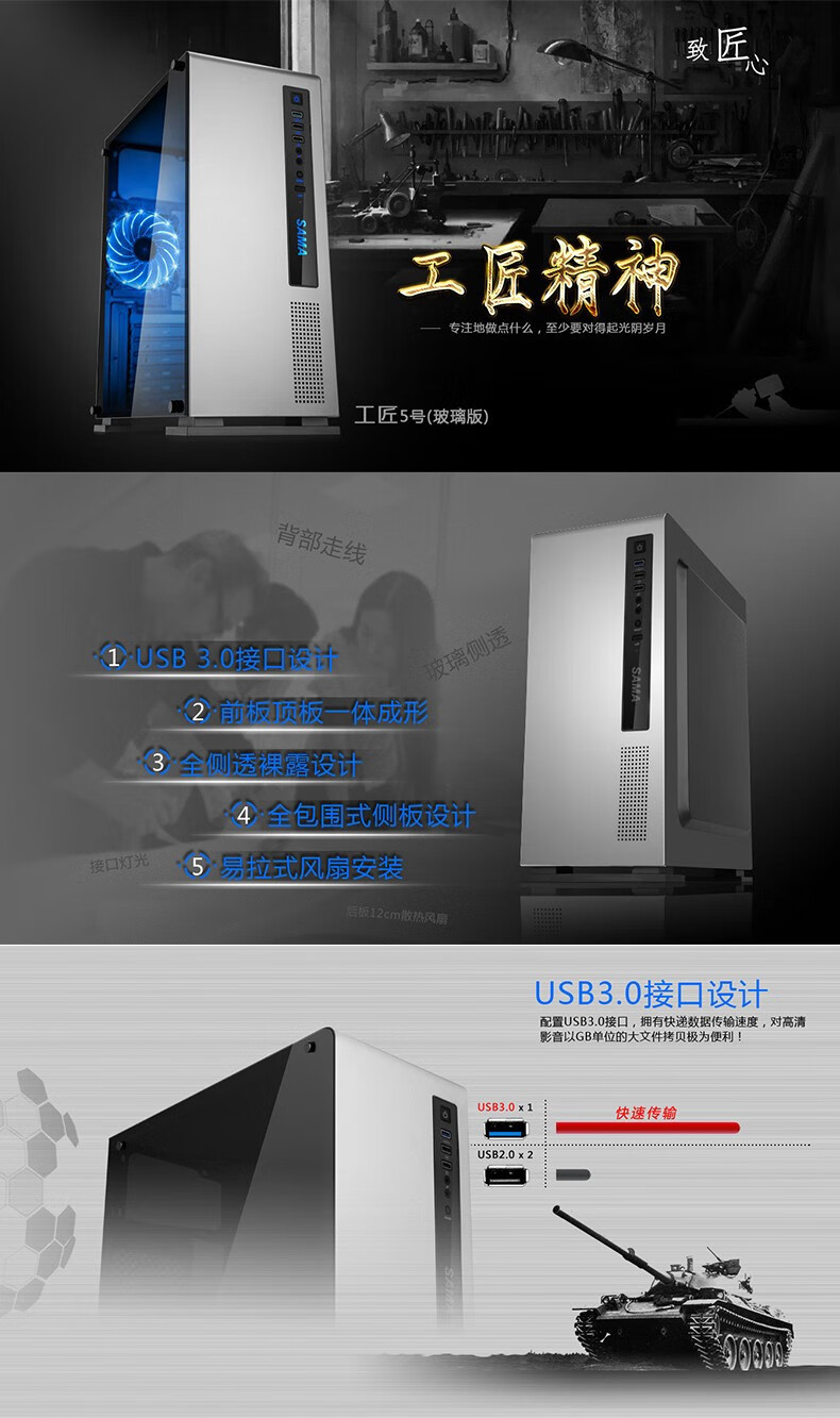 SAMA Craftsman 360 Esports 버전 ATX/MATX 마더보드 금속/유리 패널 섀시