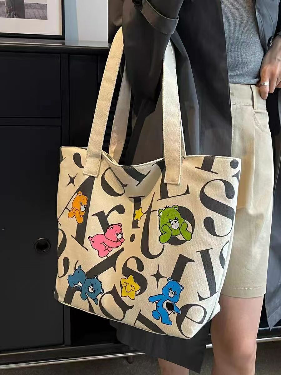 학생 캔버스 가방 대용량 토트 통근 새 가방 올매치 인쇄 미라 캐주얼 핸드 숄더 쇼핑백스토어 가기