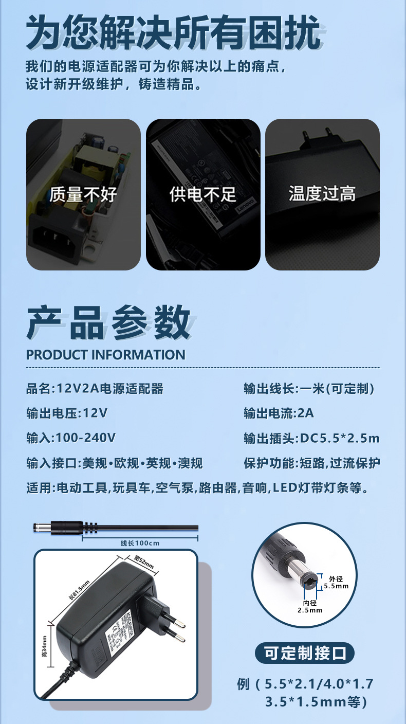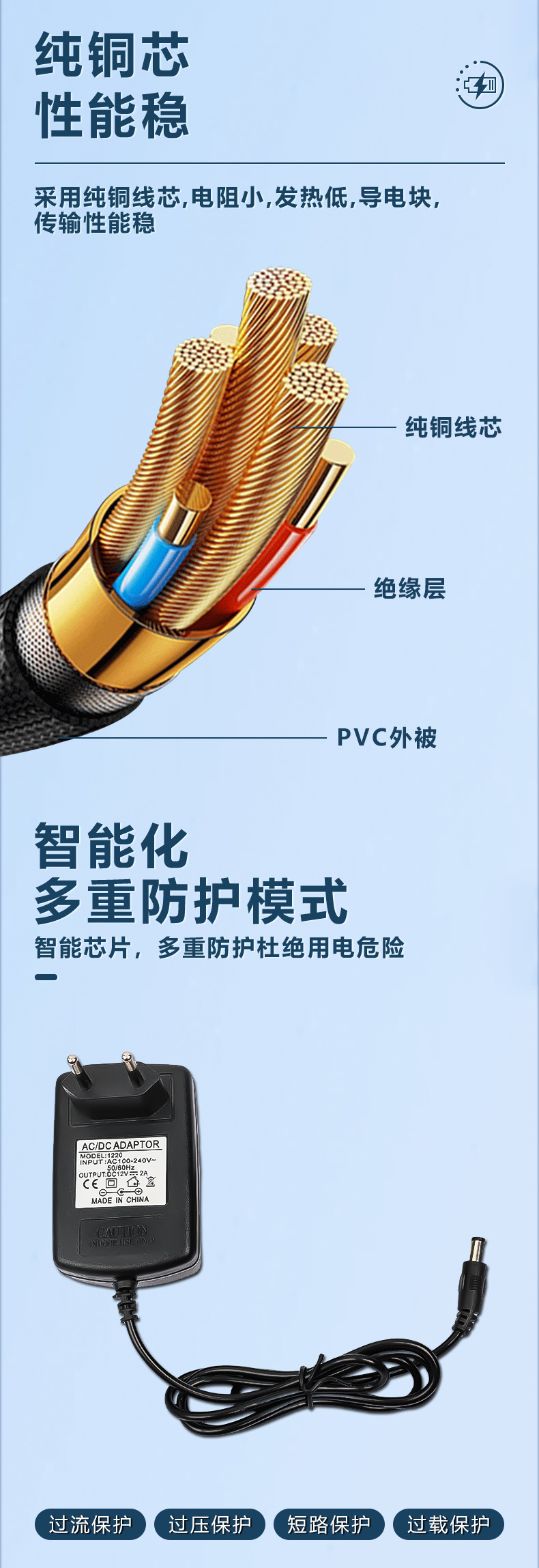 12V2A 전원 어댑터 전기 공기 펌프 자동차 공기 펌프 진공 청소기 오디오 LED 라이트 스트립 전원 공급 장치