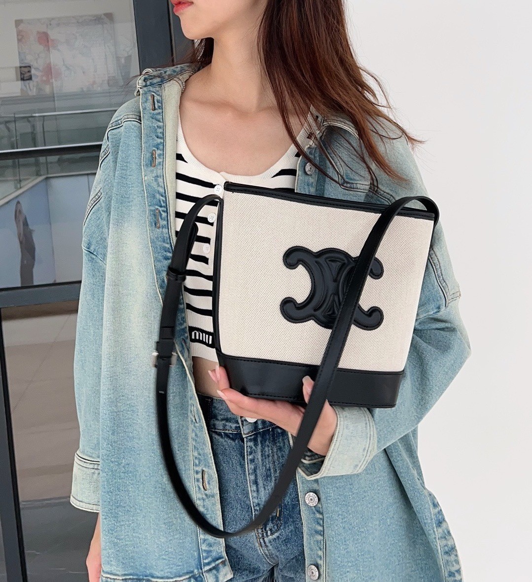 개선문 가방 여성의 2025 새로운 패션 레트로 어깨 크로스 바디 백 하이 엔드 센스 대용량 캔버스 버킷 백스토어 가기