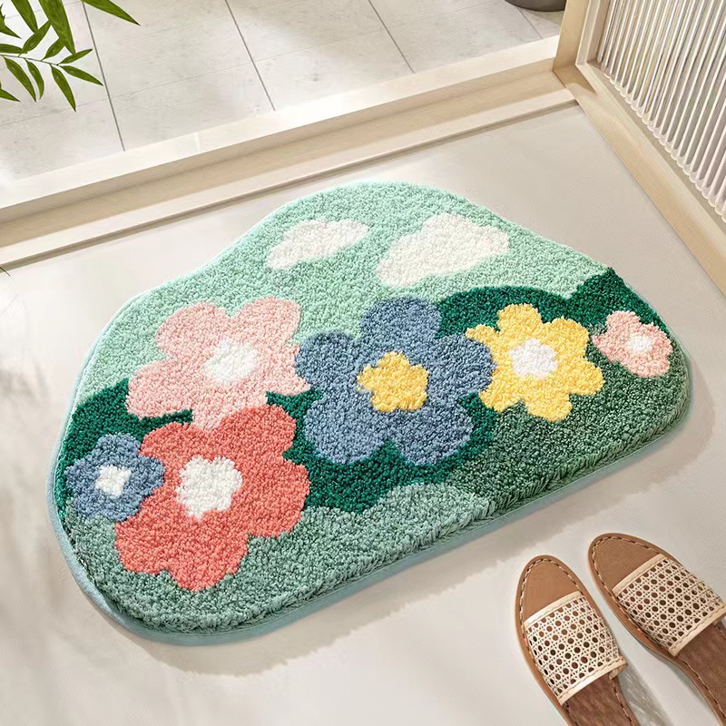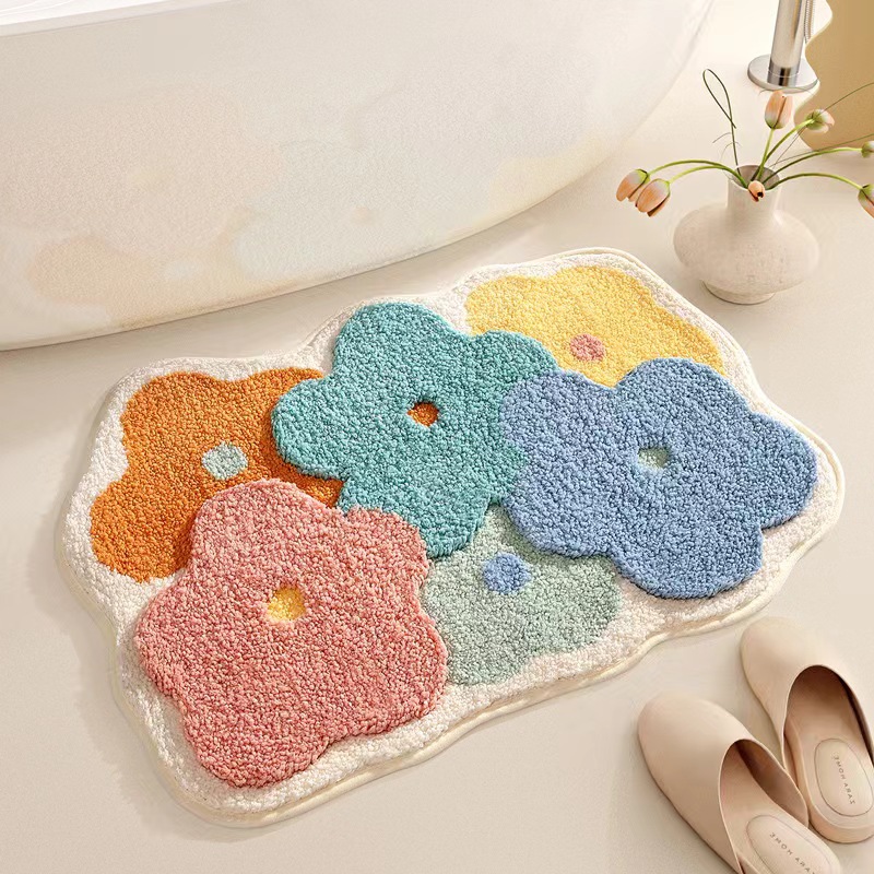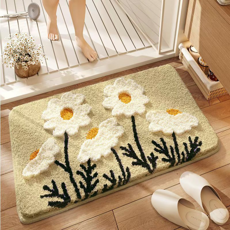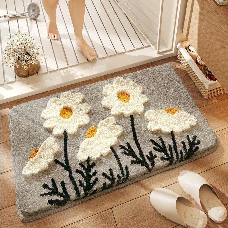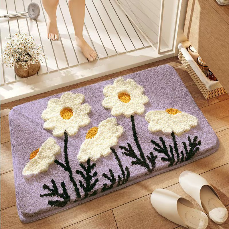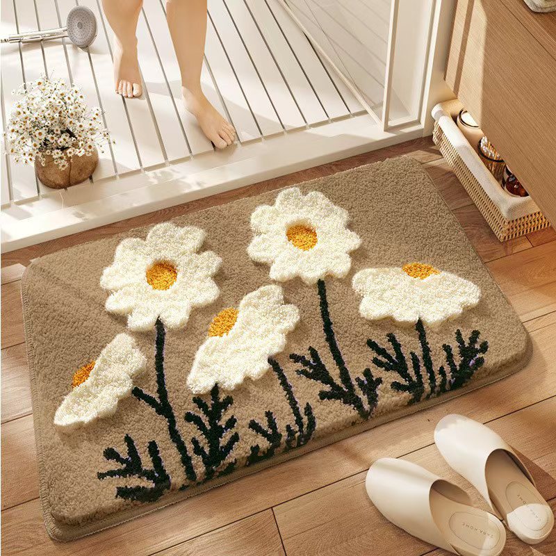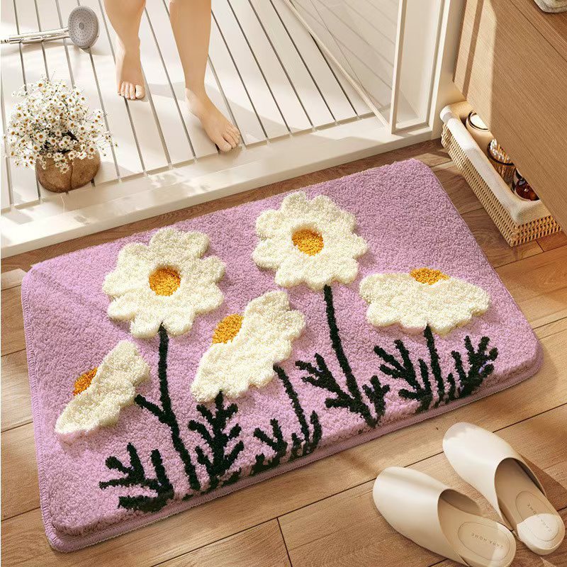 제조업체 단일 바늘 기계 욕실 벨벳 카펫 바닥 매트 작은 국화 욕실 강한 흡수성 발 매트 홈 침실 얼룩 방지스토어 가기