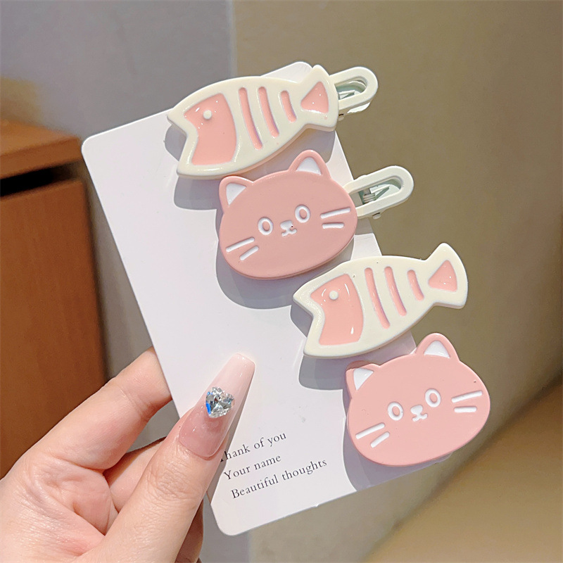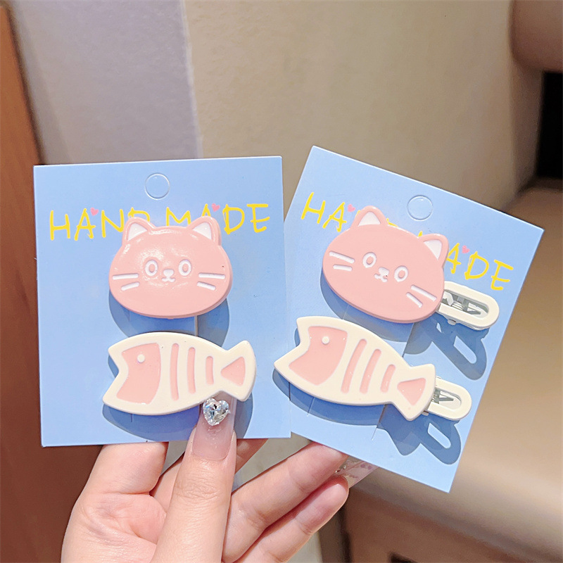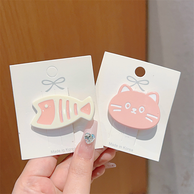 간단한 새끼 고양이 물고기 머리핀 가리 하트 귀여운 사이드 인 뱅 클립 달콤한 만화 클립 헤어 액세서리 머리글