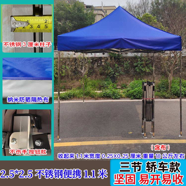 • 3X3 스테인레스 스틸 + 휴대용 1.1m + 두꺼운 타포린 블루