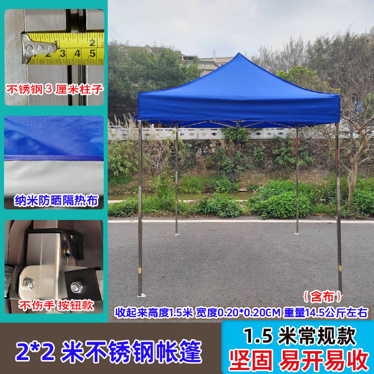 • 2X2 스테인레스 스틸 휴대용 1.1m + 두꺼운 타포린 블루