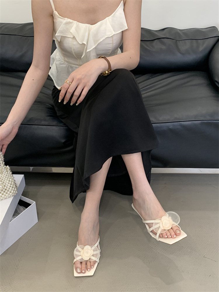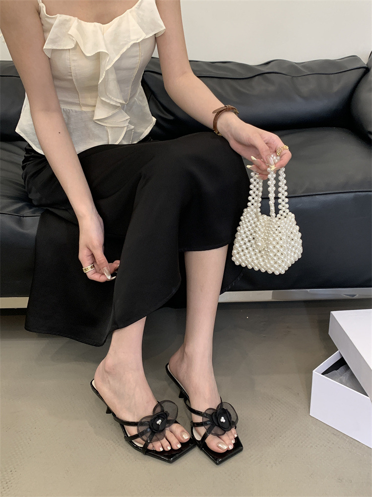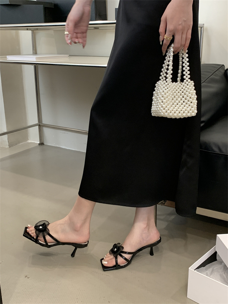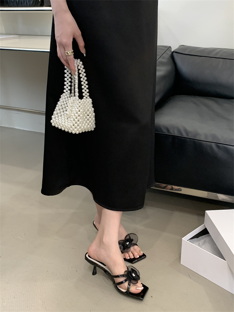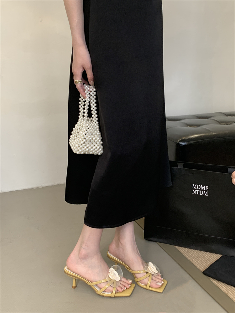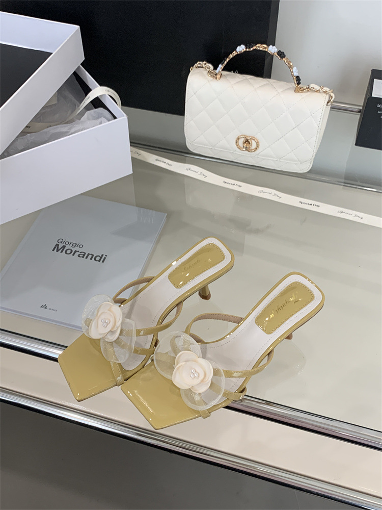 여성을 위한 사각 발가락 오픈 토 샌들, 얇은 굽 하이힐, 요정 스타일 2025 여름 새 꽃스토어 가기