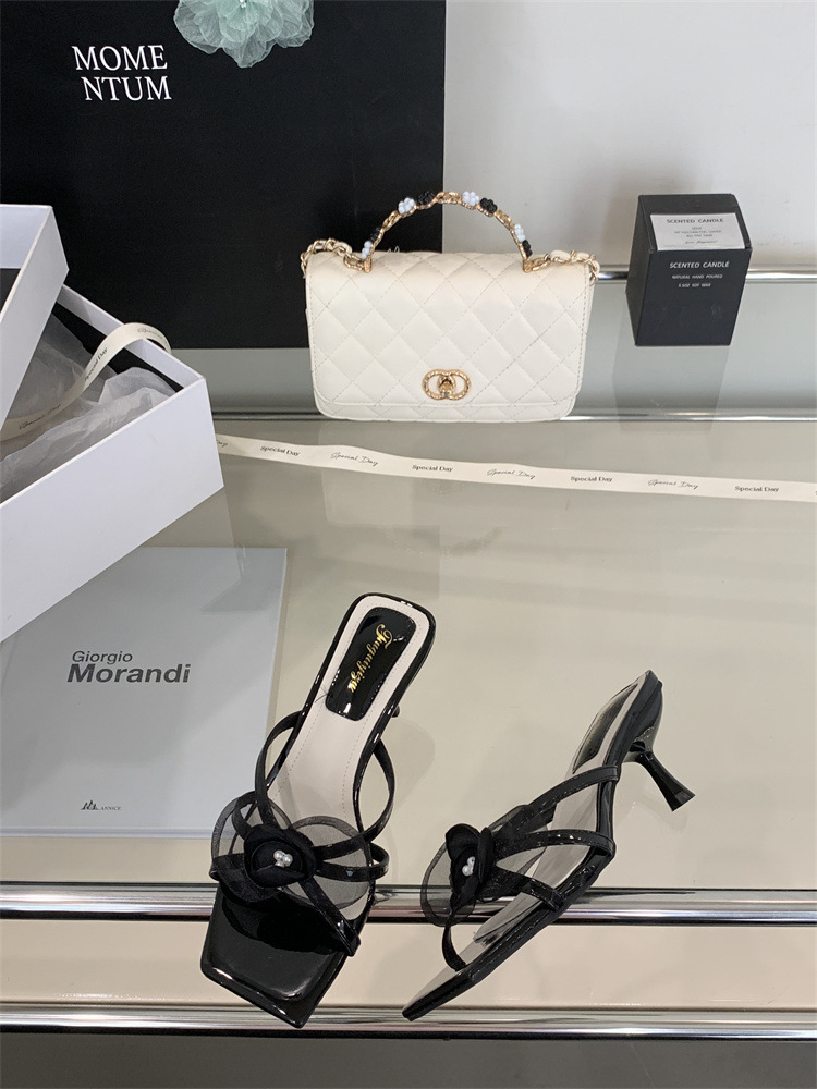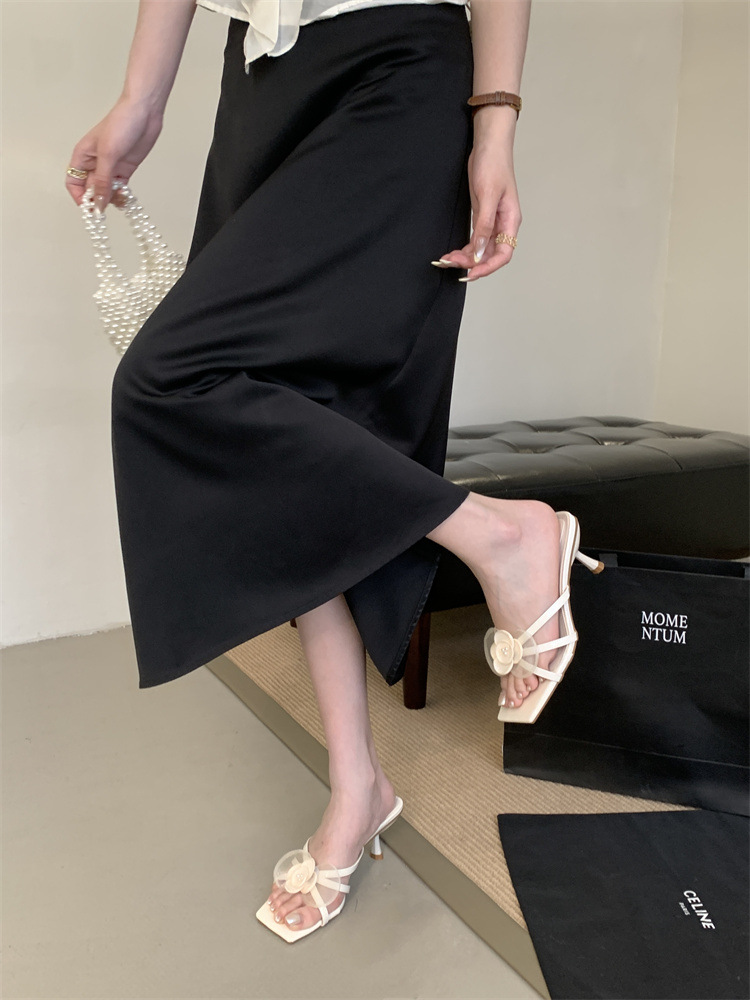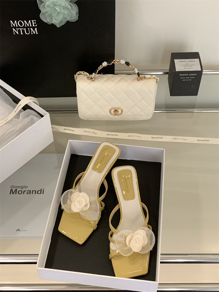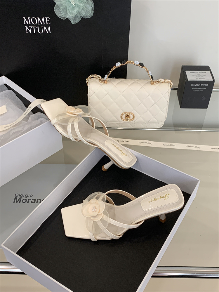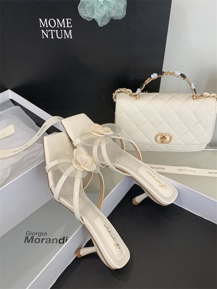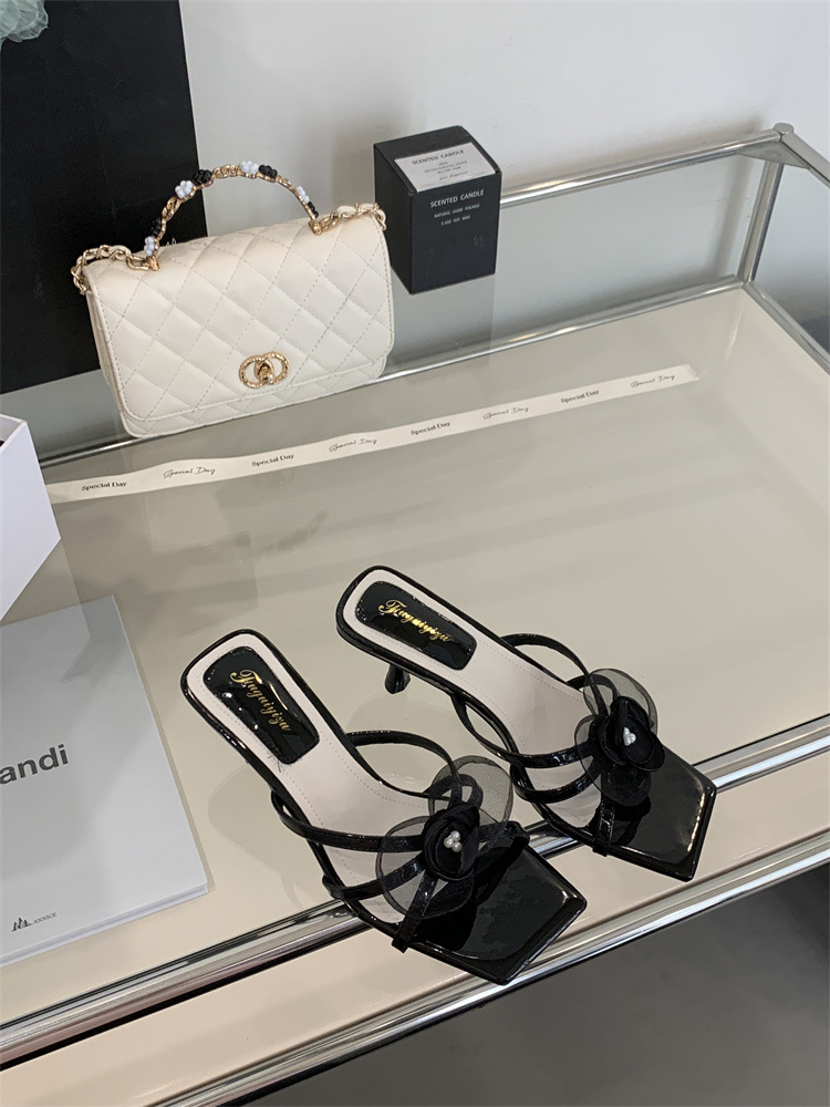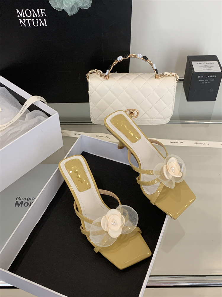 여성을 위한 사각 발가락 오픈 토 샌들, 얇은 굽 하이힐, 요정 스타일 2025 여름 새 꽃스토어 가기
