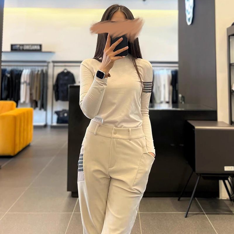 한국 골프 의류 여성용 솔리드 컬러 문자 프린트 봄, 가을 스타일 야외 스포츠 및 레저 패션 골프 바지스토어 가기