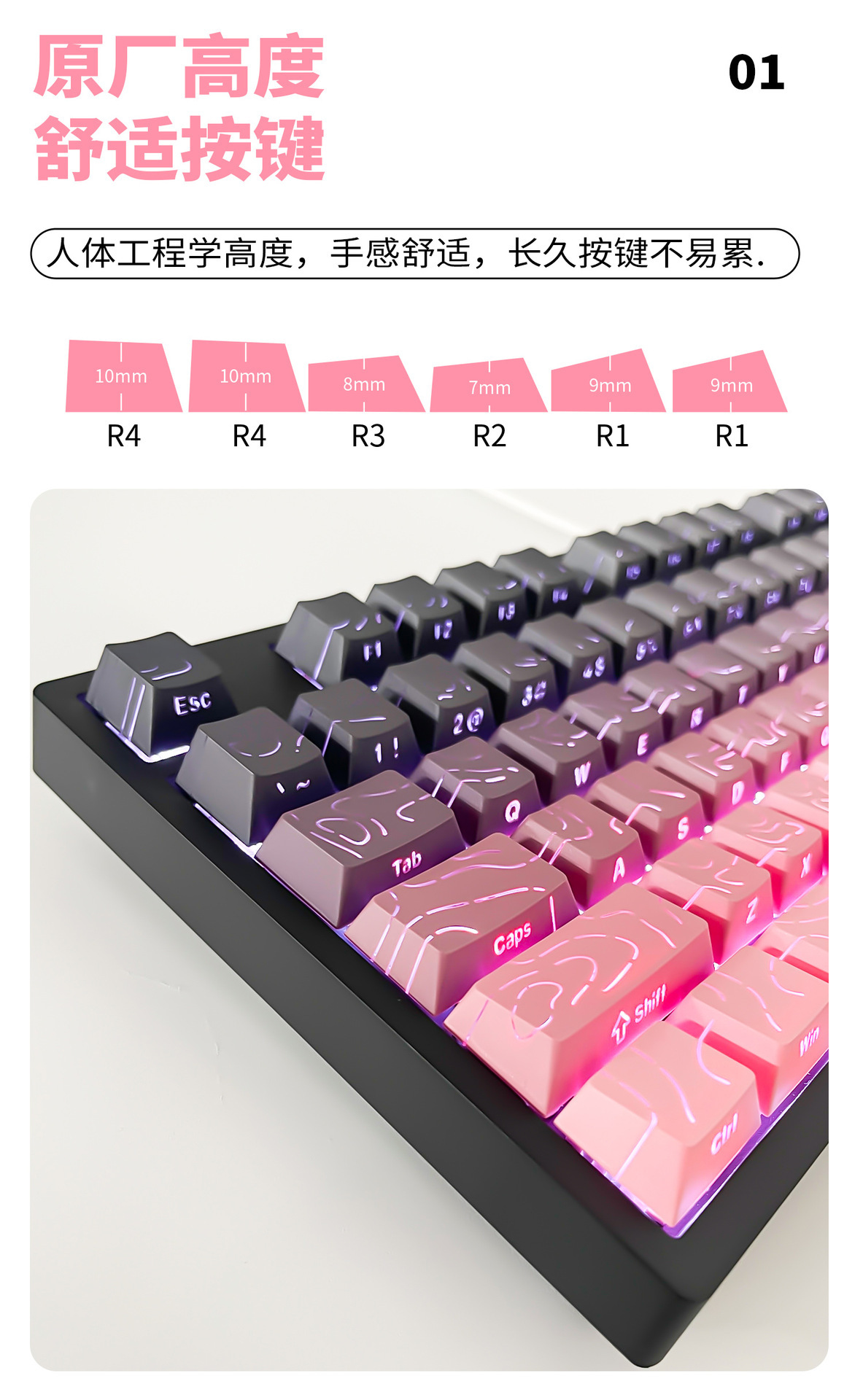 [컨투어] 원래 공장 높이 측면 새겨진 문자 기계식 키보드에 적합한 키 캡의 작은 풀 세트