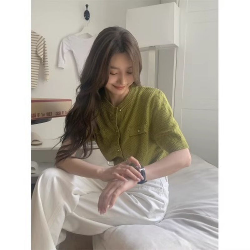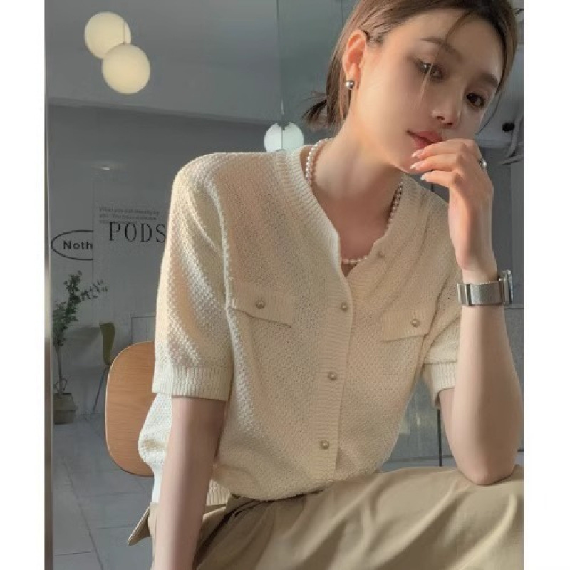 봄과 여름 2025 새로운 프랑스 레트로 샤넬 스타일 니트 반팔 카디건 디자인 틈새 세련된 우아한 탑스토어 가기