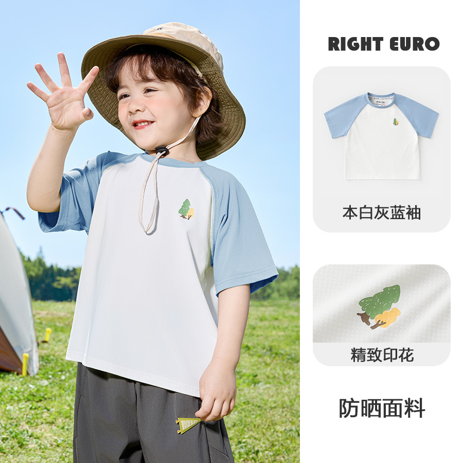 오른쪽 유럽 소년 여름 반팔 티셔츠 아동복 어린이 아기 어린이 탑 반소매 선 스크린 여름 얇은 소년스토어 가기