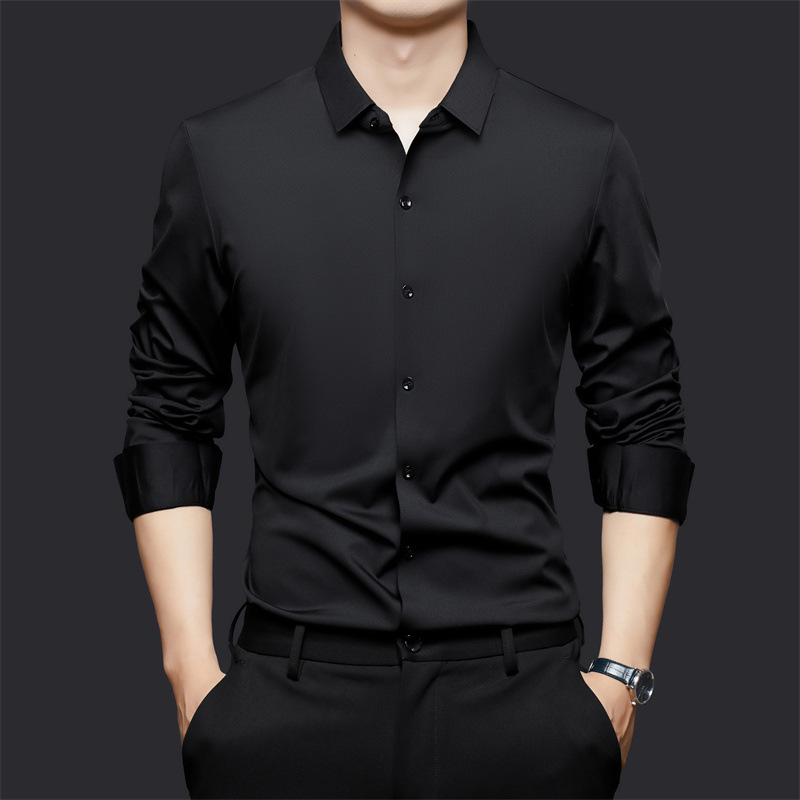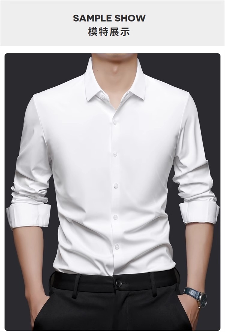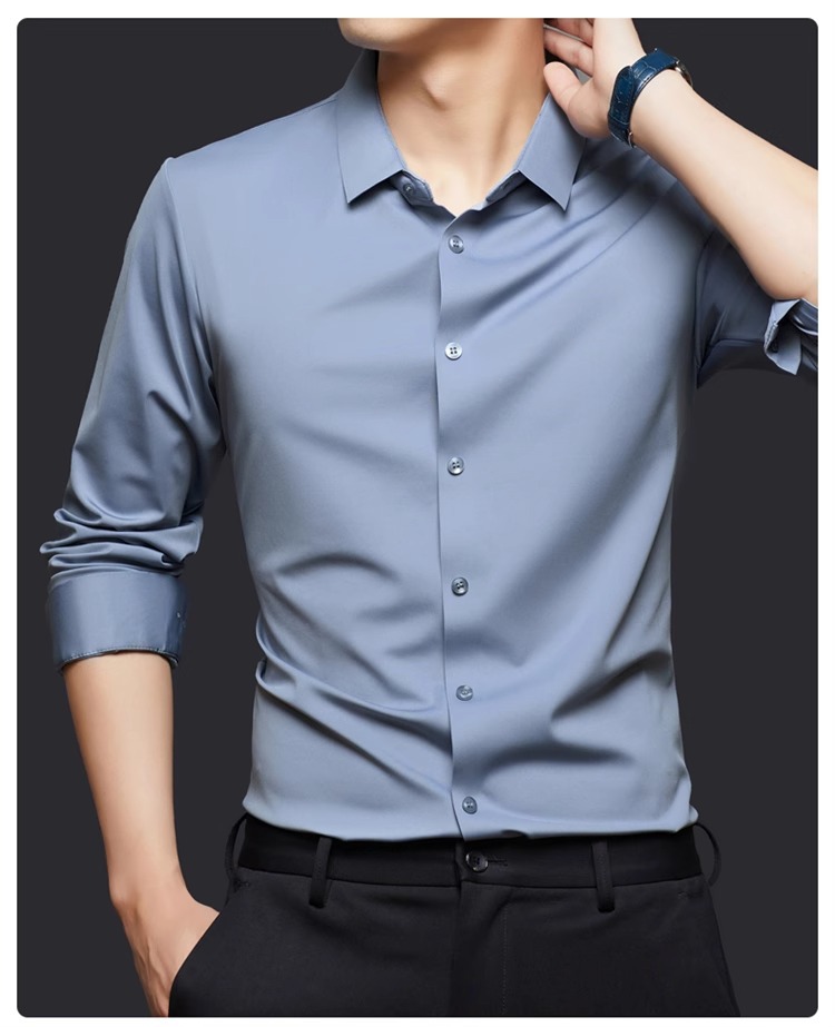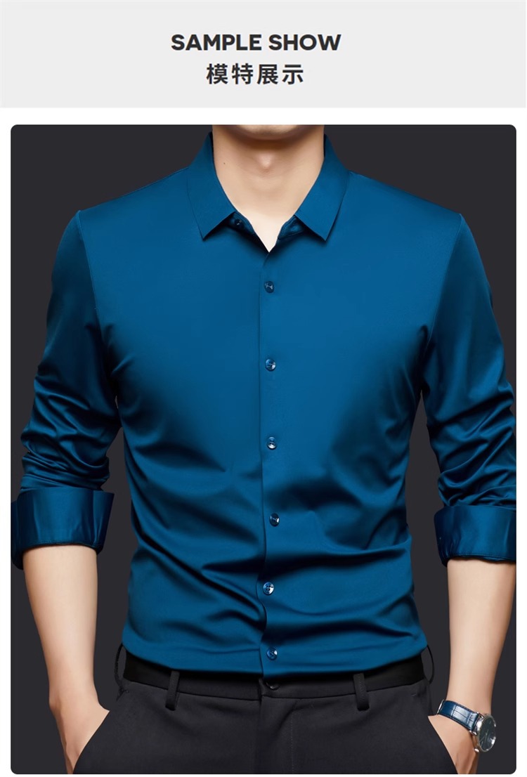 봄 여름 심리스 고탄성 남성 셔츠 긴팔 비즈니스 캐주얼 노다림방지 주름 셔츠 남성 실키 드레이프 셔츠스토어 가기