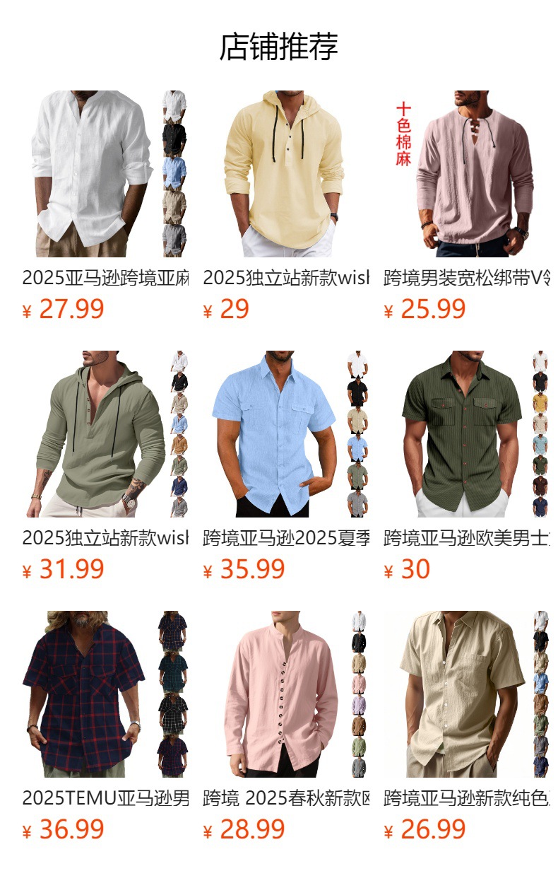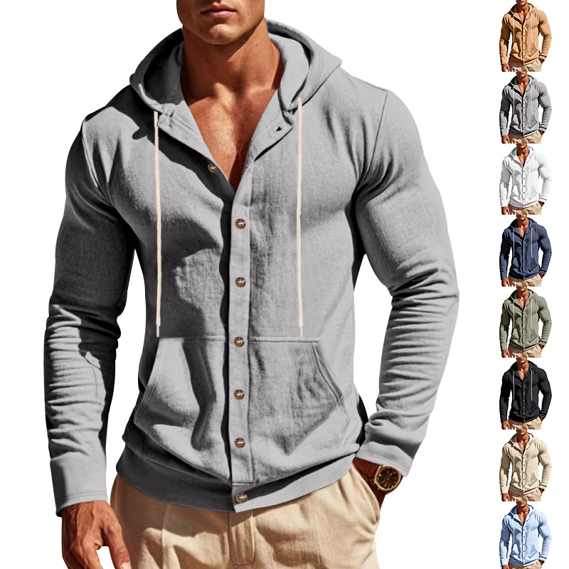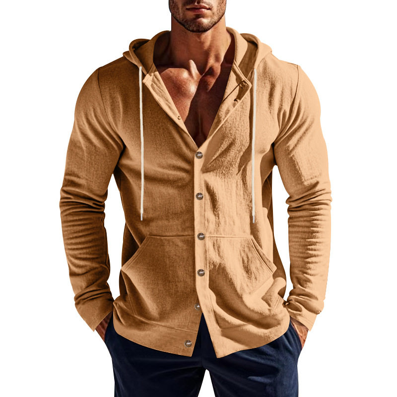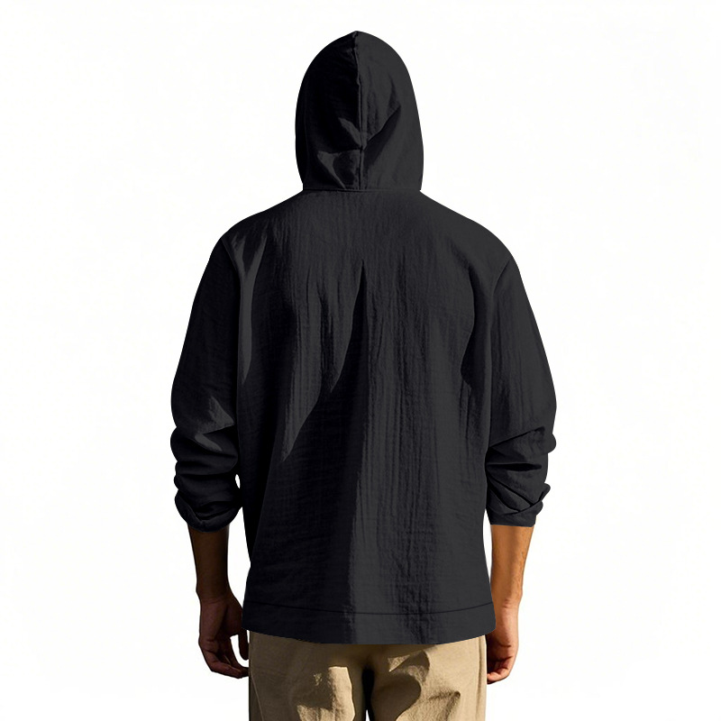 产品风格,美式秋冬男士亚麻长袖连帽衬衫