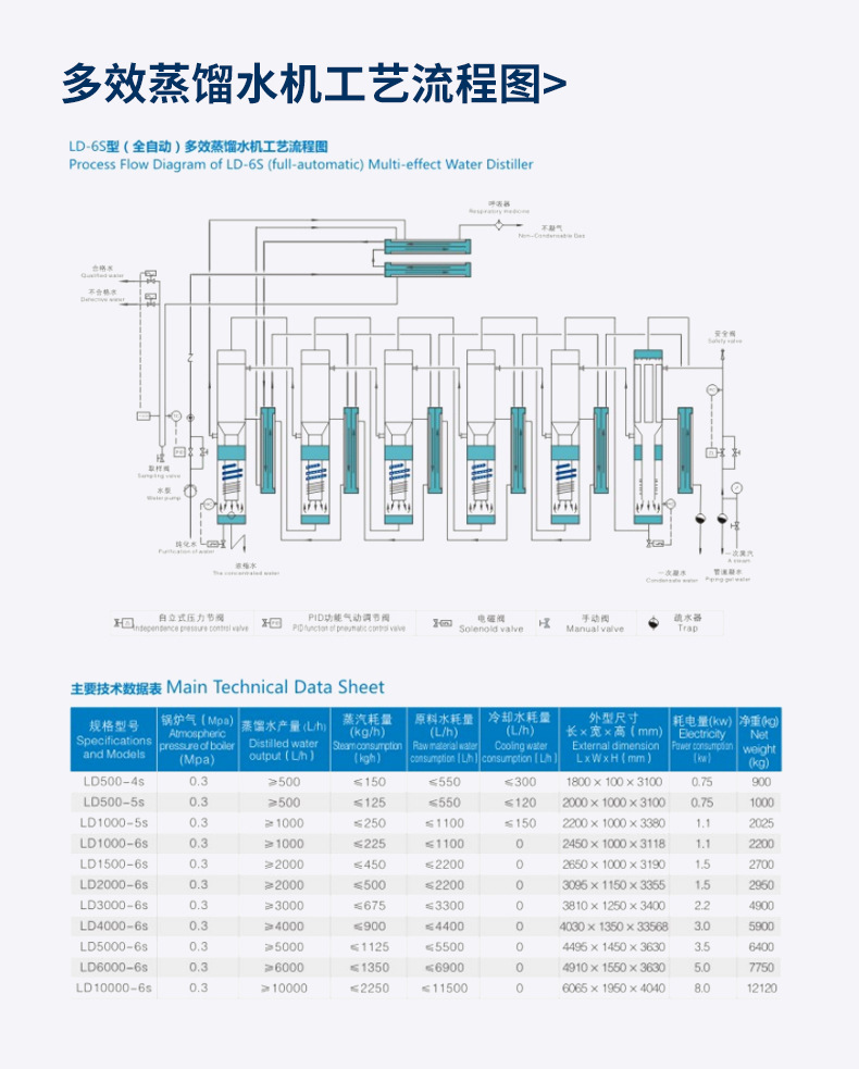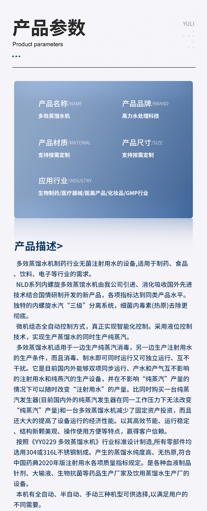 1000L 다중 효과 정제수 기계 완전 자동 주사수 시스템 튜브 정제수 장비 대형 주입 구성스토어 가기