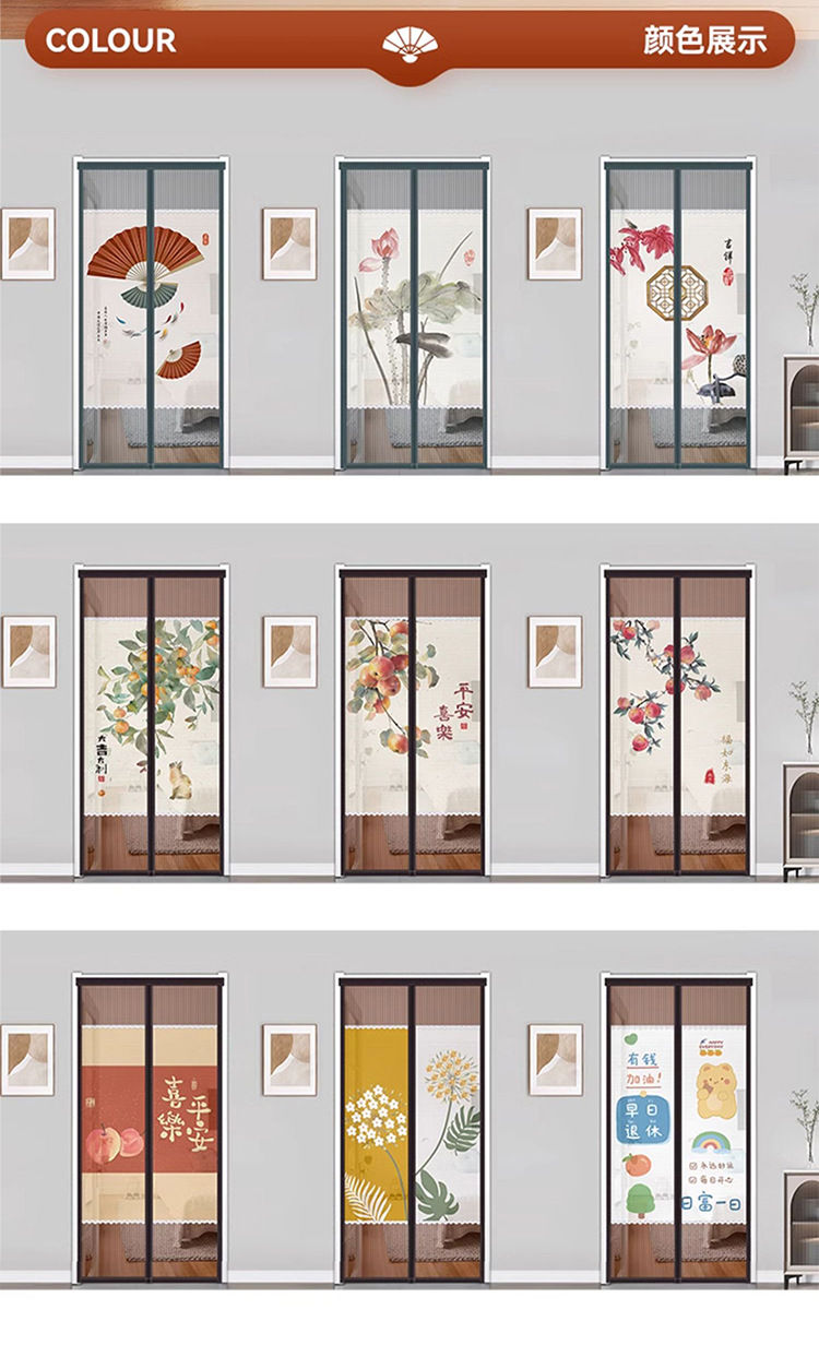 새로운 중국 스타일의 모기 방지 도어 커튼 펀치 프리 홈 대피소 개인 정보 보호 여름 파티션 커튼 자기 흡착 다이아몬드 메쉬 커튼 엔트리 도어