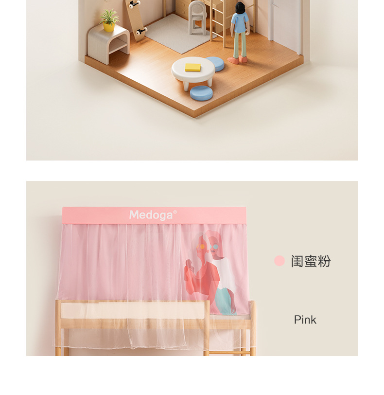 Meiduojia 학생 기숙사 모기장 이층 침대 범용 싱글 침대 개인 정보 보호 침대 커튼 통합 방진 및 모기 방지