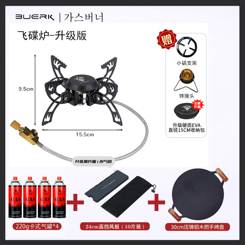 • ㊶㊴㊅③Ⓧ㊨≟ツ◈✾飞碟炉升级款+220g卡式气罐*4+烤盘+1.5L不锈钢水壶+挡风板