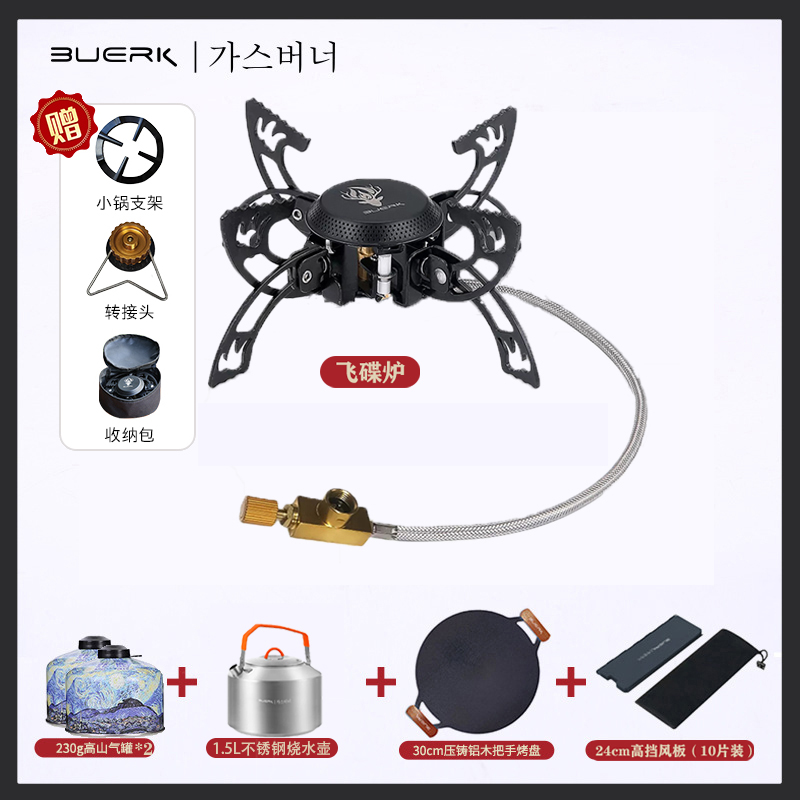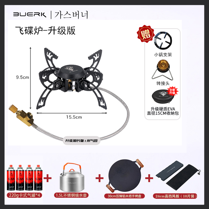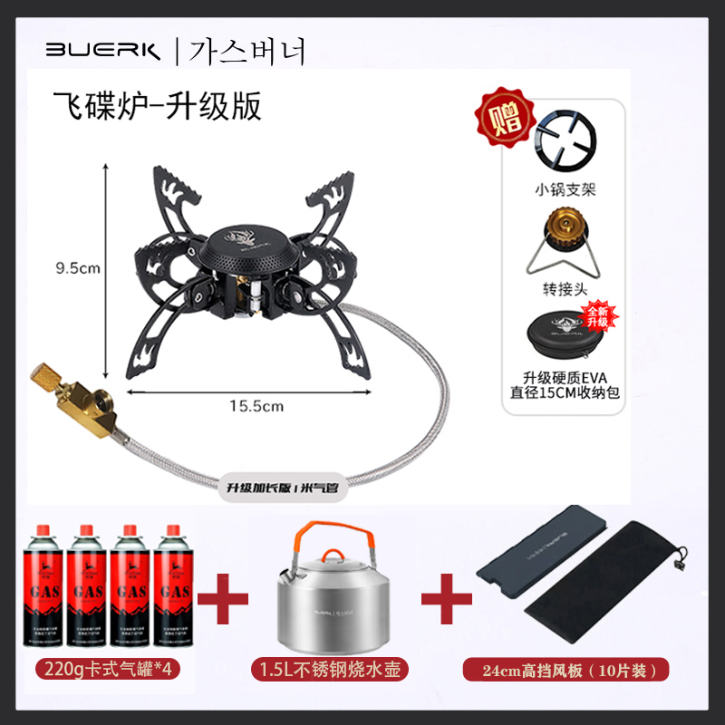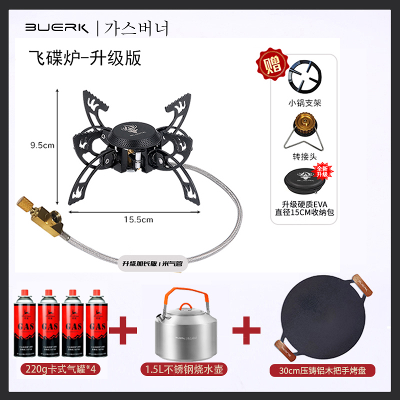• ㊶㊴㊅③Ⓧ㊨≟ツ◈✾飞碟炉+220g卡式气罐*4+烤盘+1.5L不锈钢水壶+挡风板