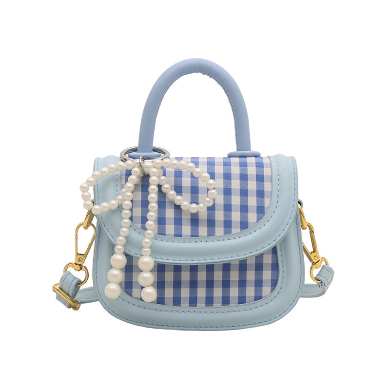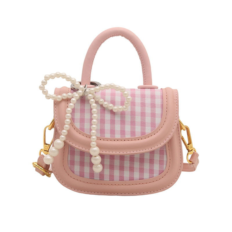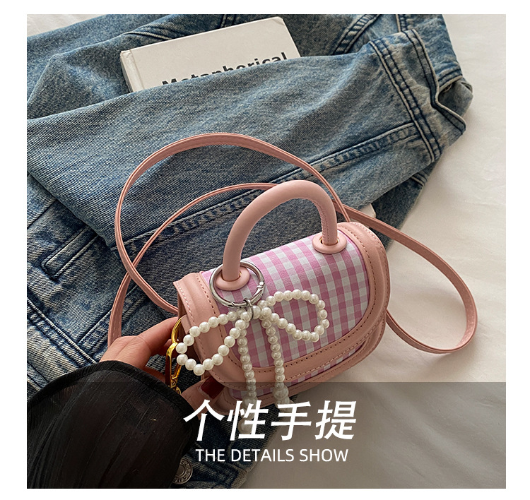 어린이 가방 2025 새로운 달콤한 격자 무늬 핸드백 일본 귀여운 활 휴대용 어깨 크로스 바디 백 여성용스토어 가기