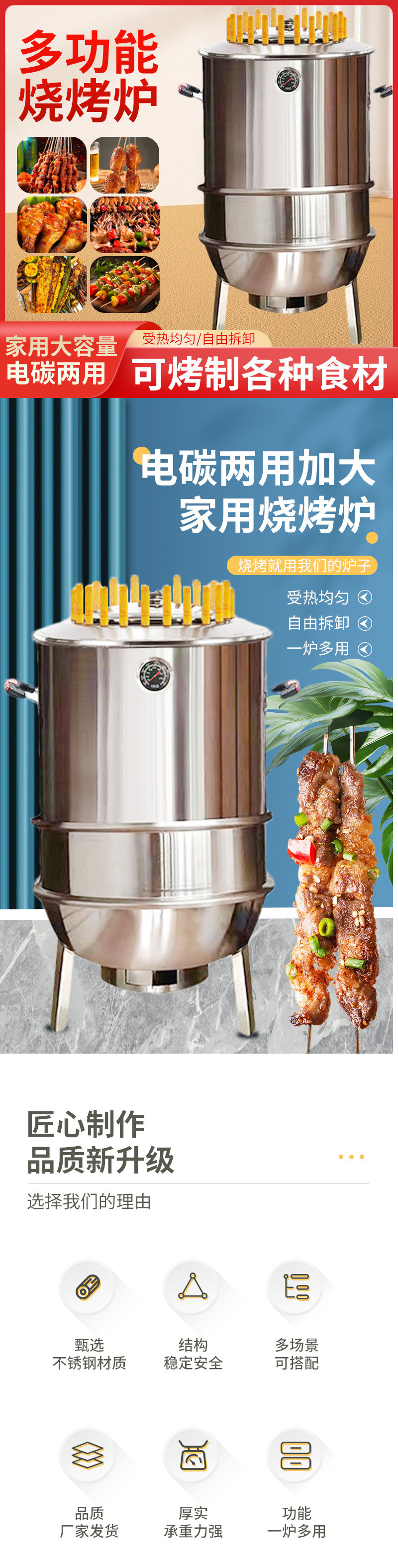 바베큐 그릴 무연 행잉 그릴 바베큐 그릴 가정용 상업용 스토브 바베큐 스테인레스 스틸 야외 실내 그릴