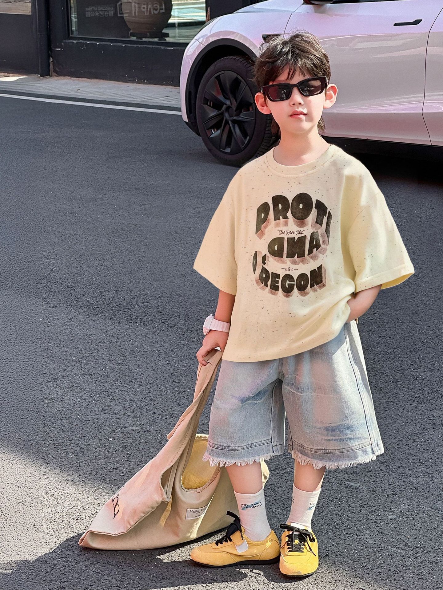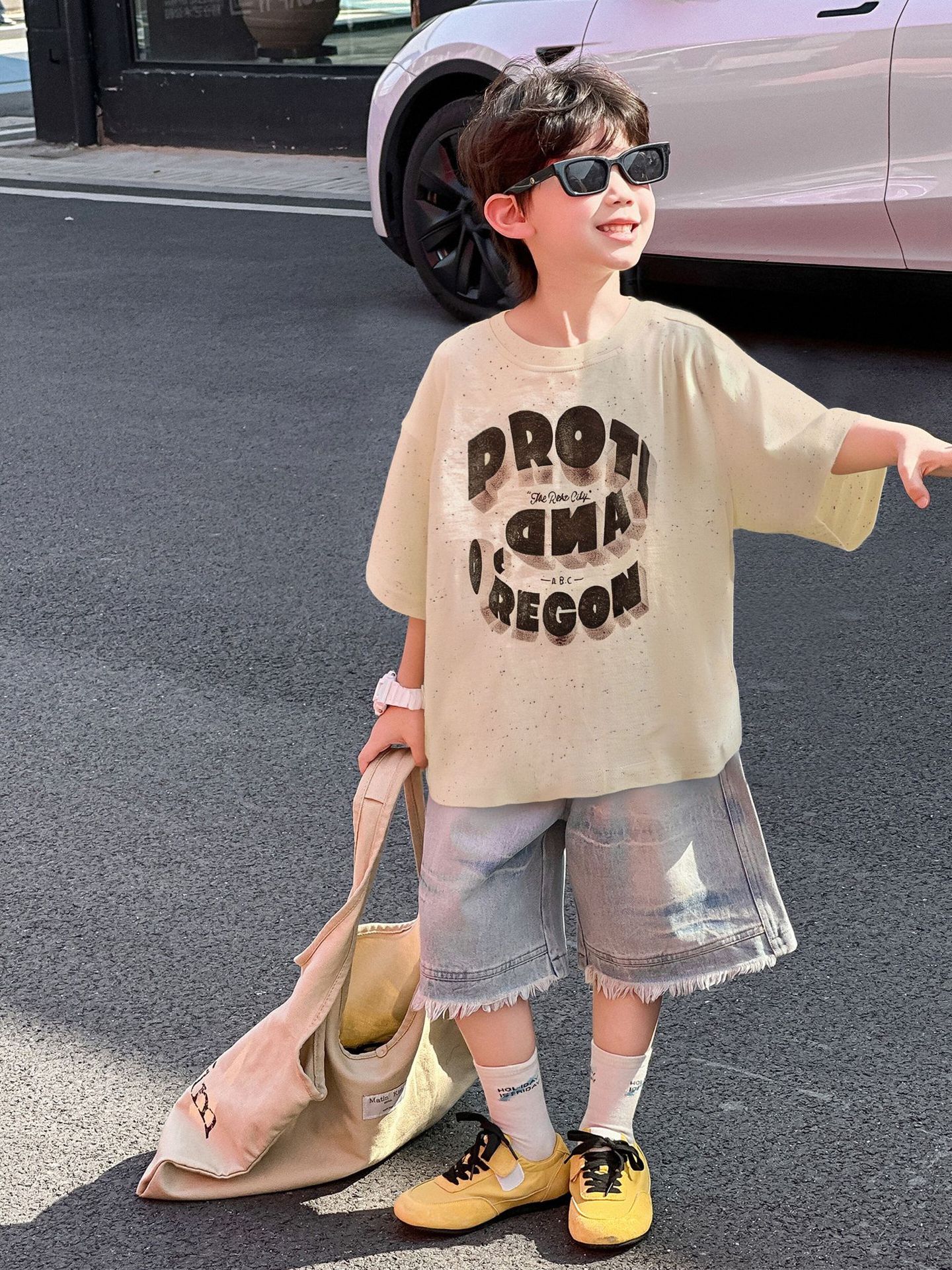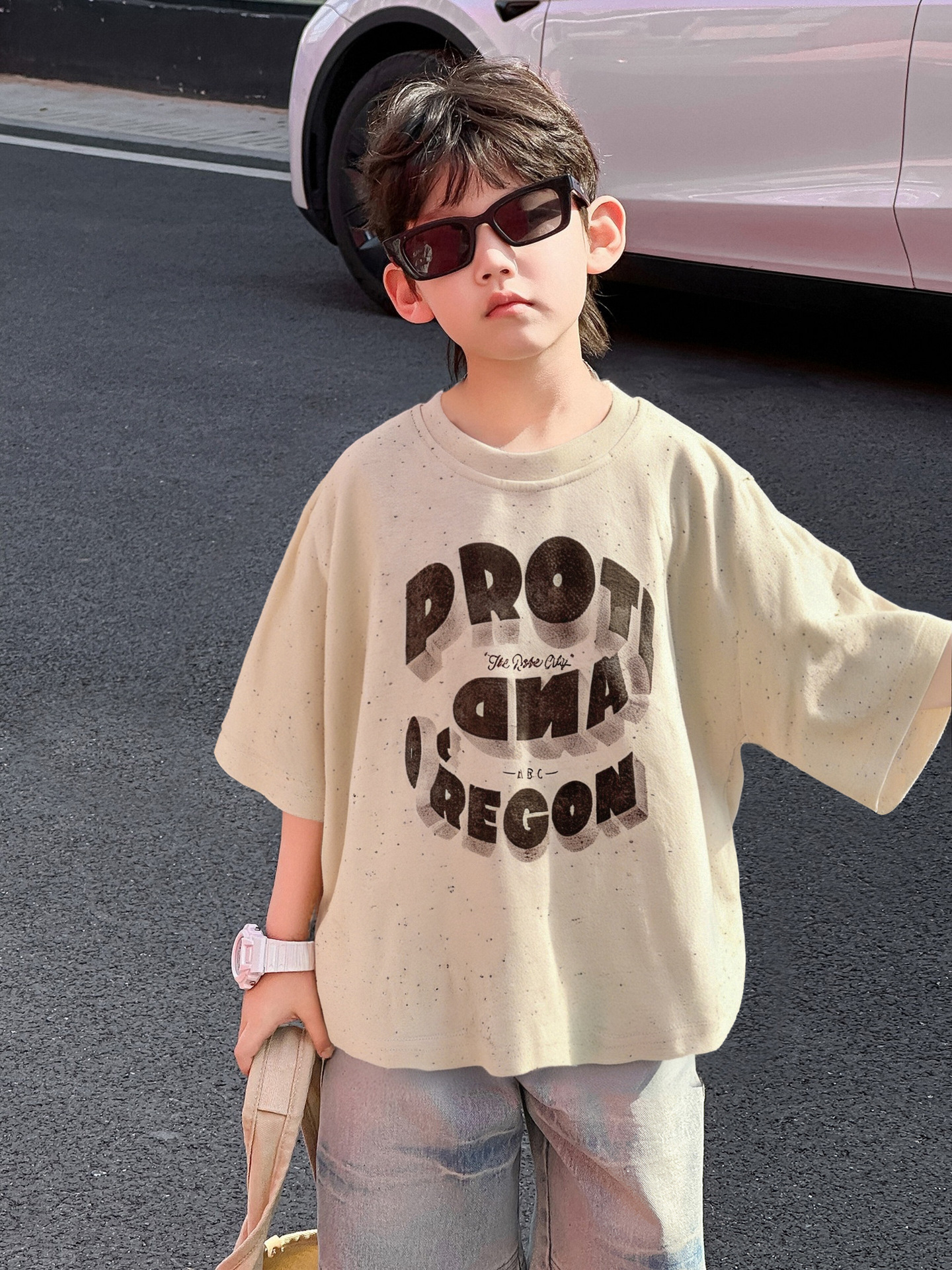 소년 여름 반팔 티셔츠 아동 여름 2025 새로운 한국어 버전 컬러 도트 유행 복고풍 느슨한 아동복