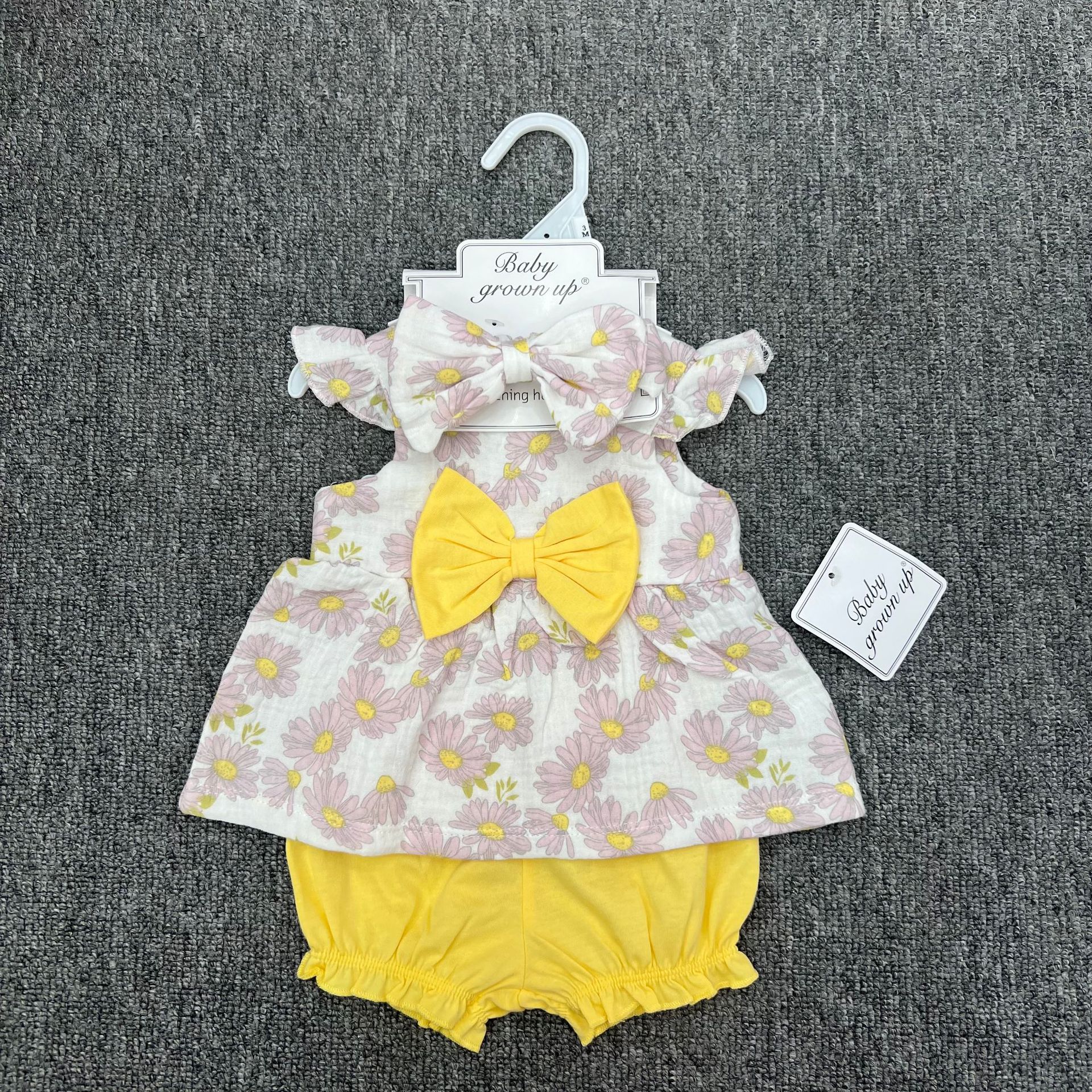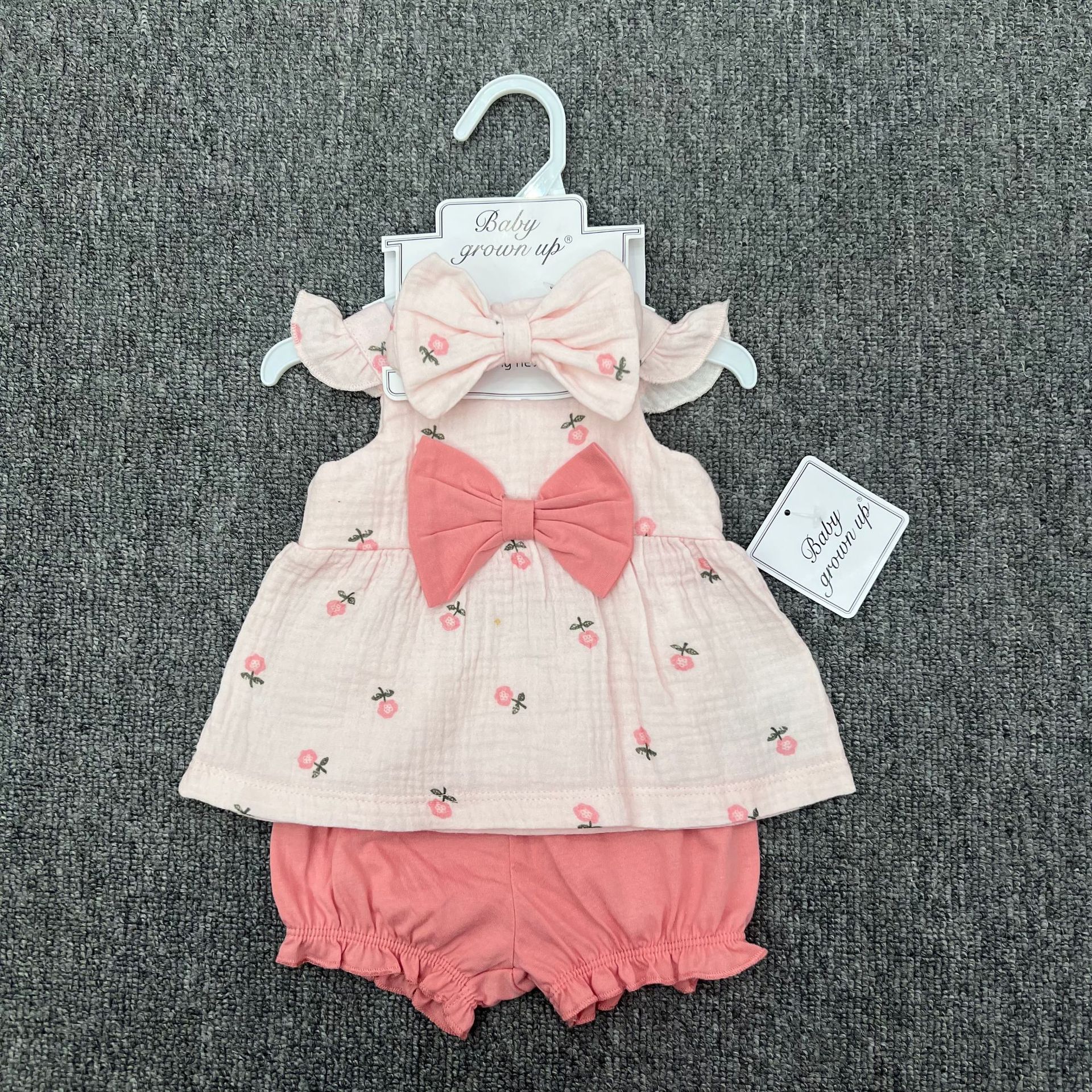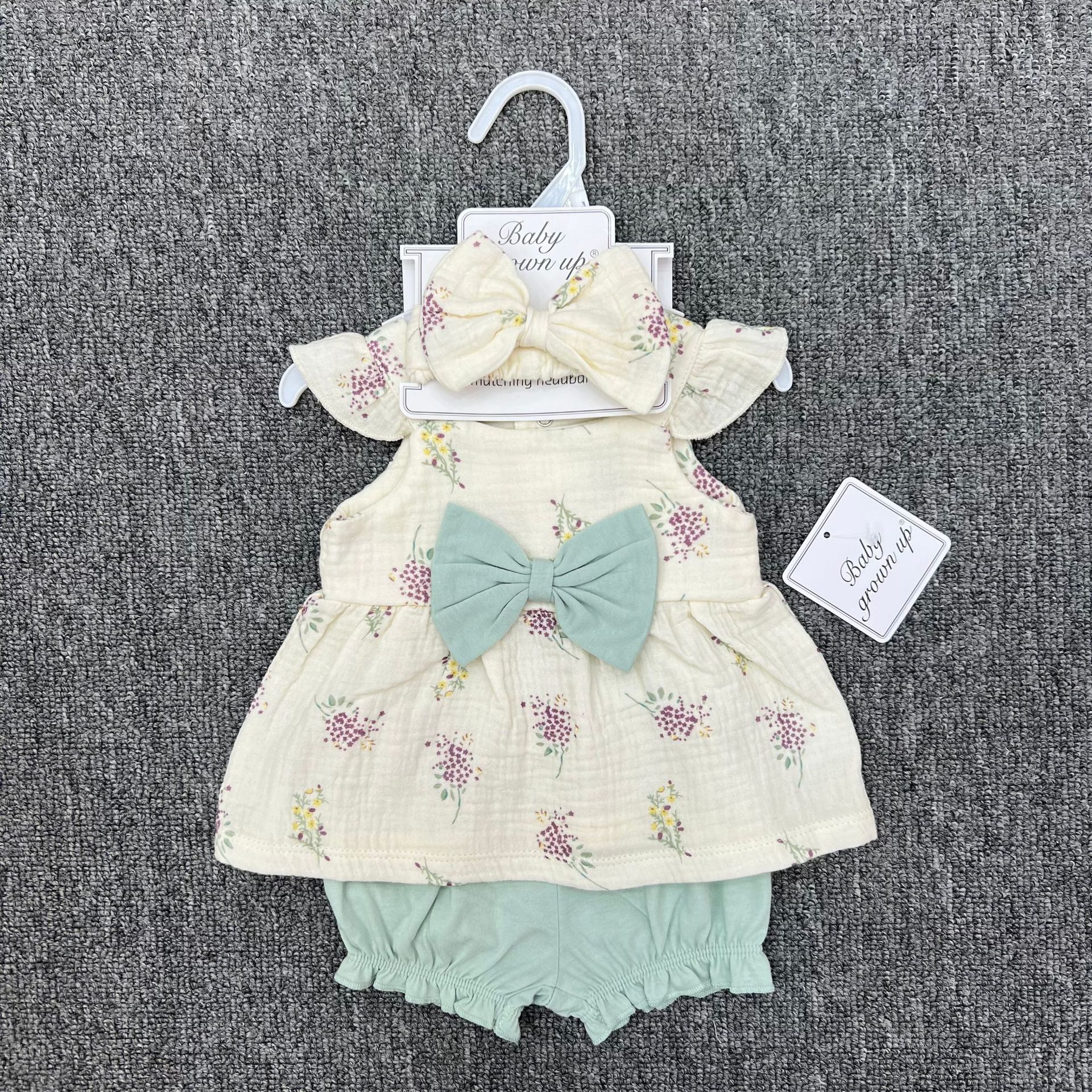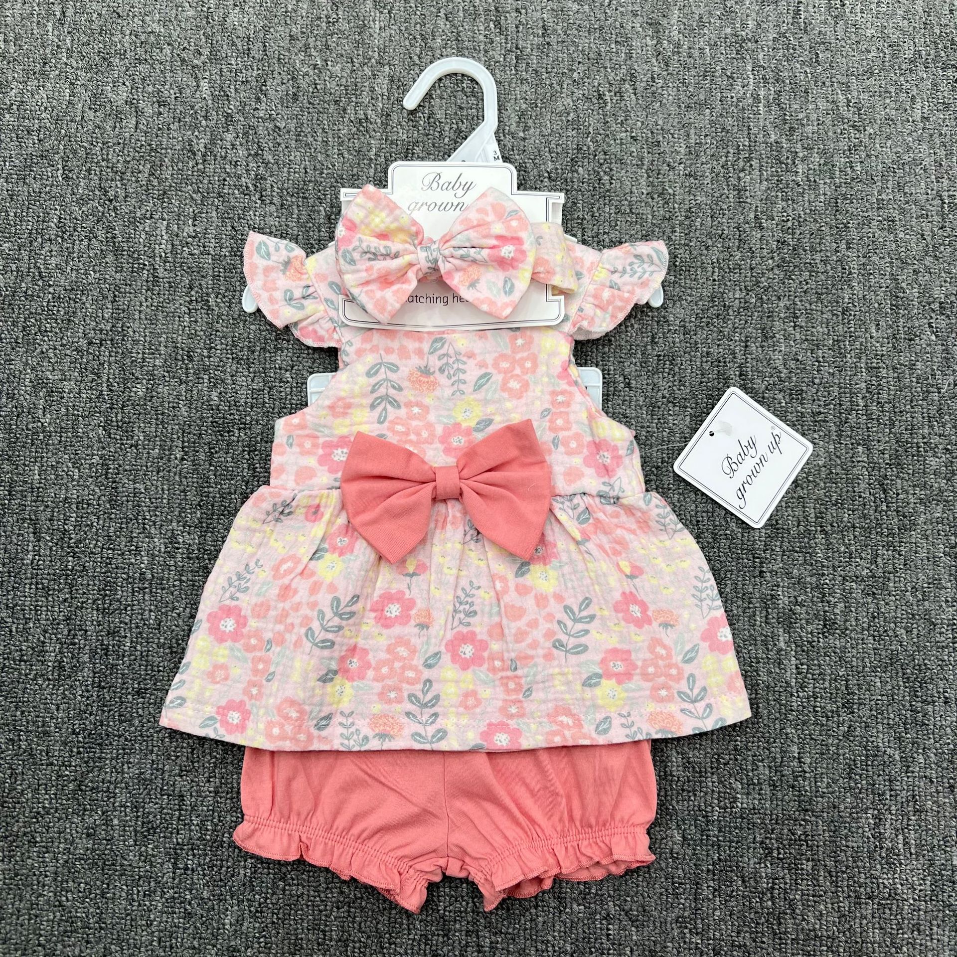 대외 무역 새로운 유럽과 미국의 여름 소녀 아기 멜빵 작은 플라이 슬리브 나비 크레이프 코튼 스커트 3 피스 세트스토어 가기