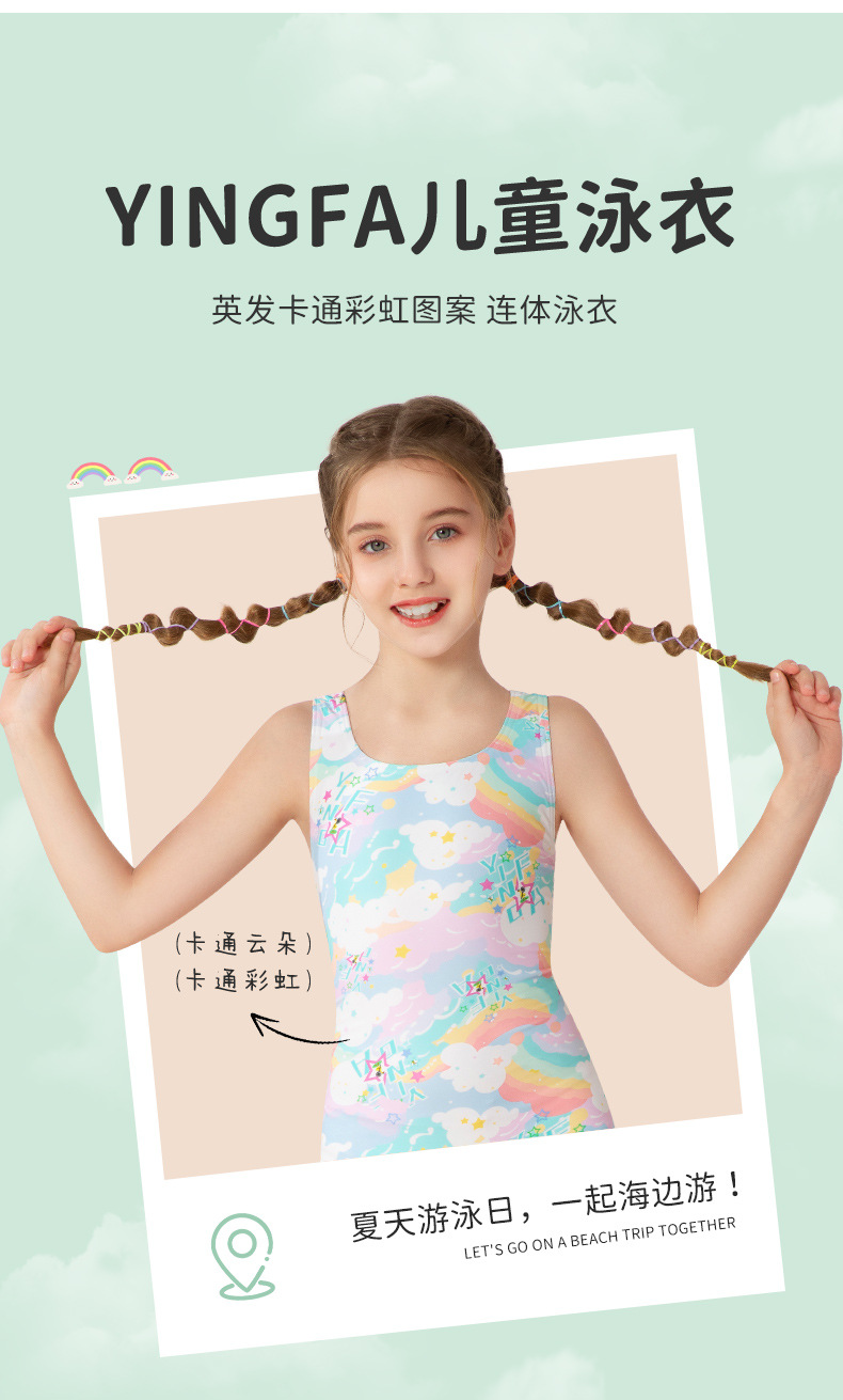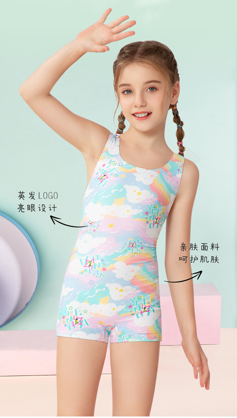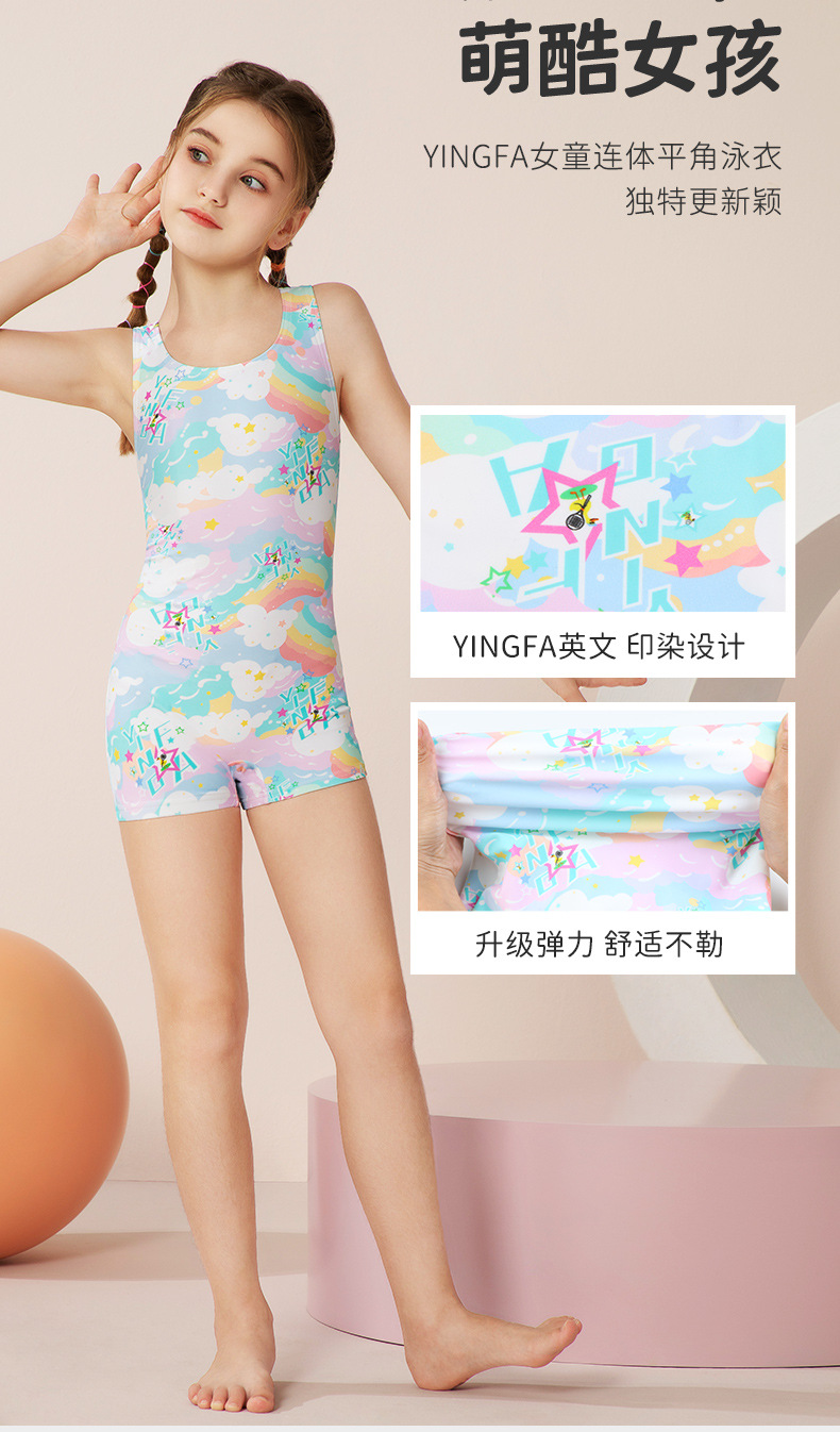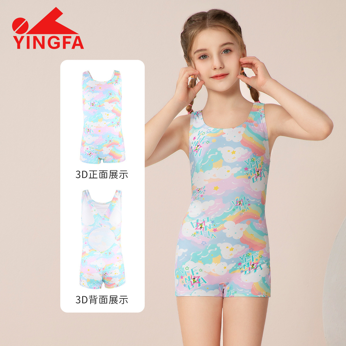 Yingfa 어린이 수영복 소녀의 새로운 원피스 복서 수영복 전문 훈련 속건성 어린이 수영복스토어 가기