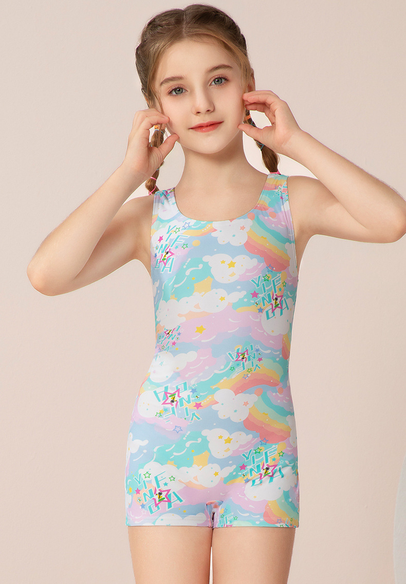 Yingfa 어린이 수영복 소녀의 새로운 원피스 복서 수영복 전문 훈련 속건성 어린이 수영복