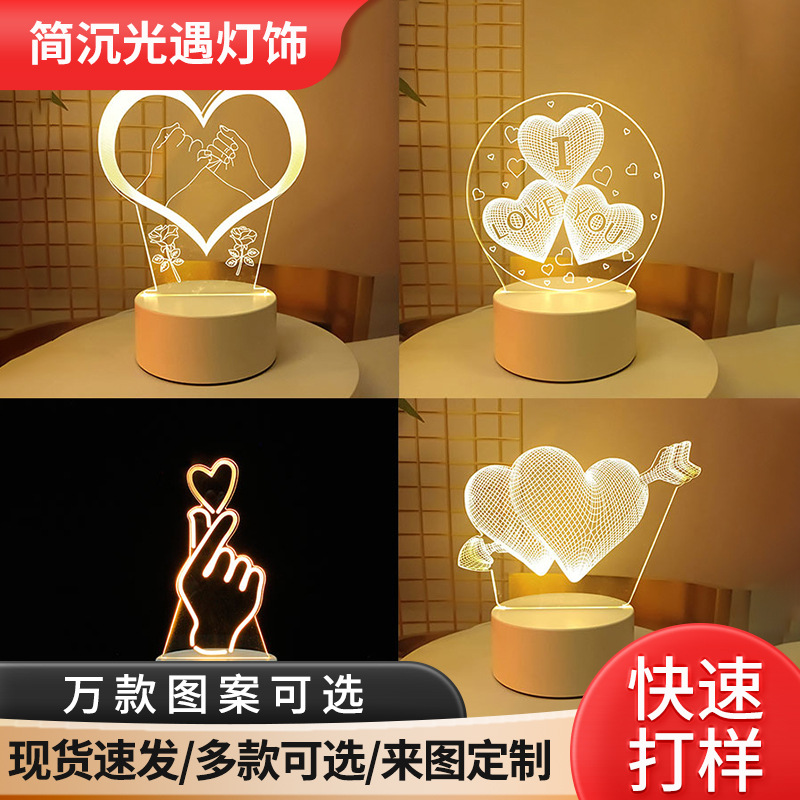 520 발렌타인데이 3D 야간등 귀여운 만화 아크릴 침실 침대 옆 분위기 조명 리모컨 플러그인 테이블 램프 선물스토어 가기
