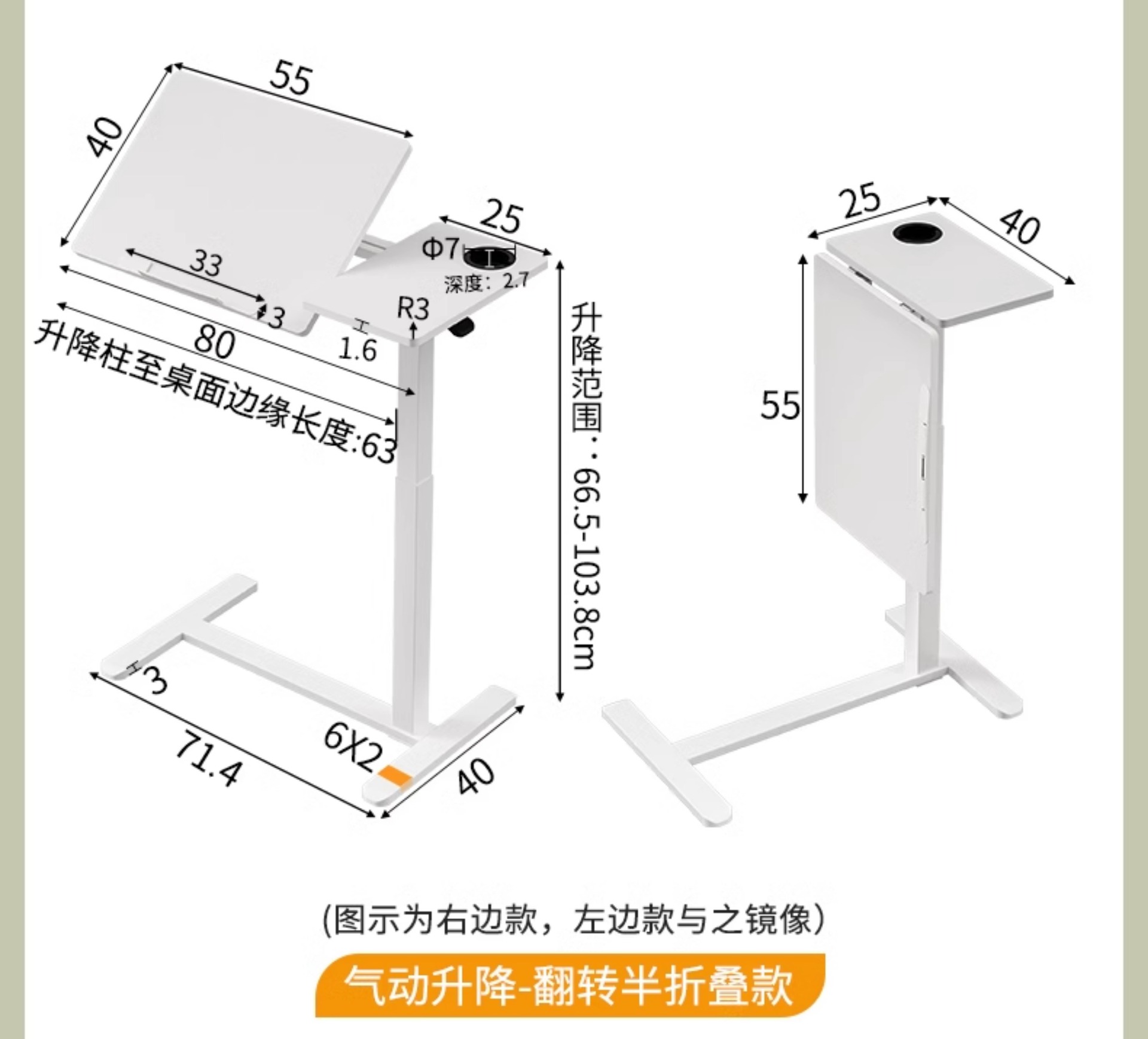 • [공압 리프트/반접이식/뒤집기 가능-오른쪽] 풀 라이스 화이트/바 포함