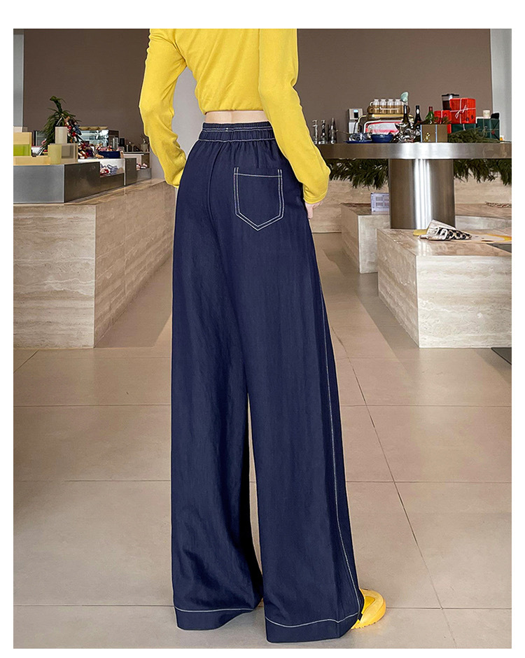 맥스 데이크스 ® 여성용 탑스티치 아이스 실크 청바지, 신축성 있는 허리, 와이드 팬츠, 패셔너블한 살 커버, 다용도, 슬리밍 바닥 길이 바지