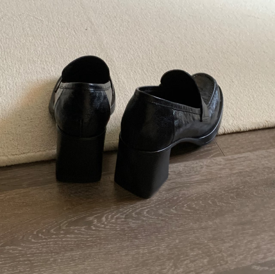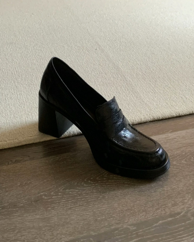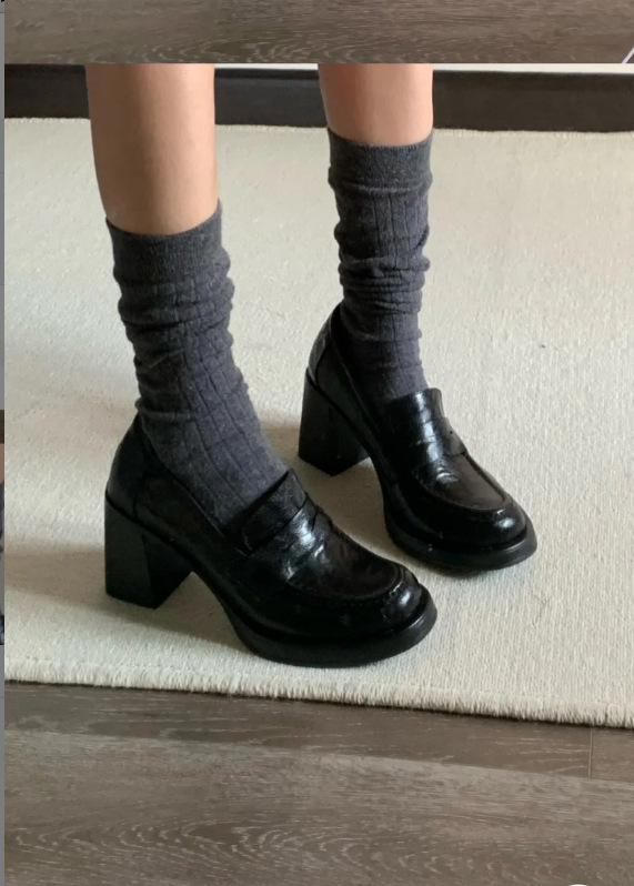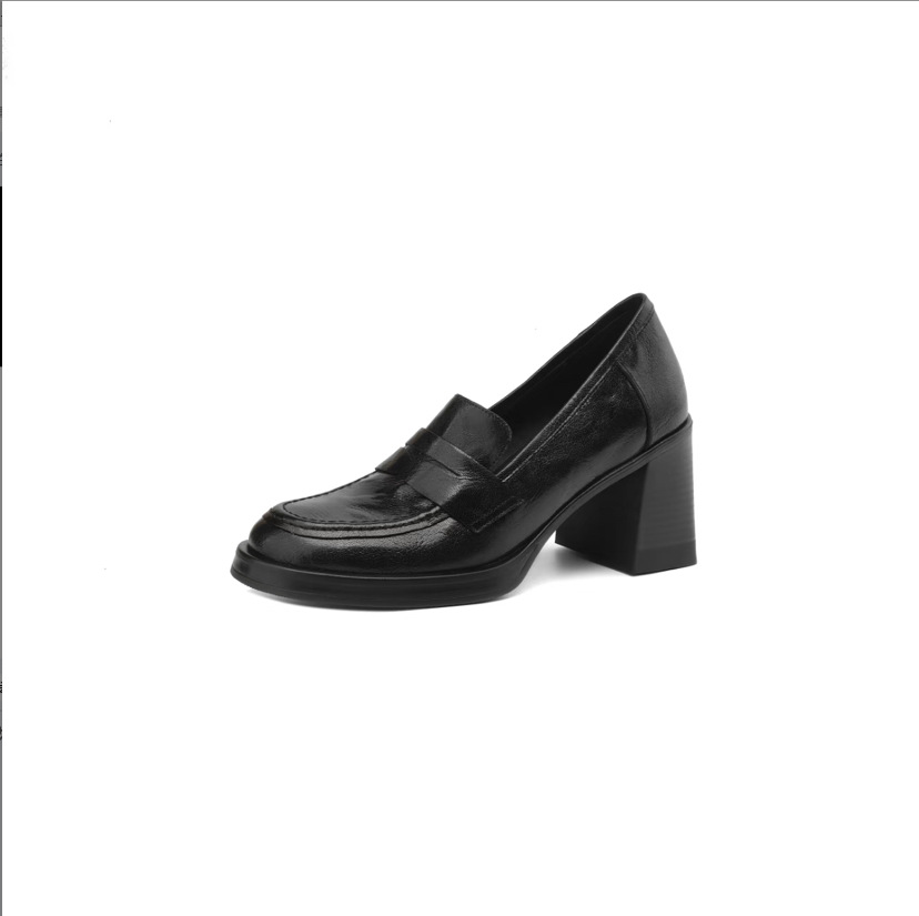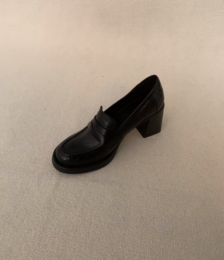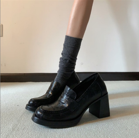 8cm 증가 ~ 통근 레트로 하이힐 여성용 블랙 슬립 온 로퍼 여성용 간단한 영국 스타일 작은 가죽 신발스토어 가기
