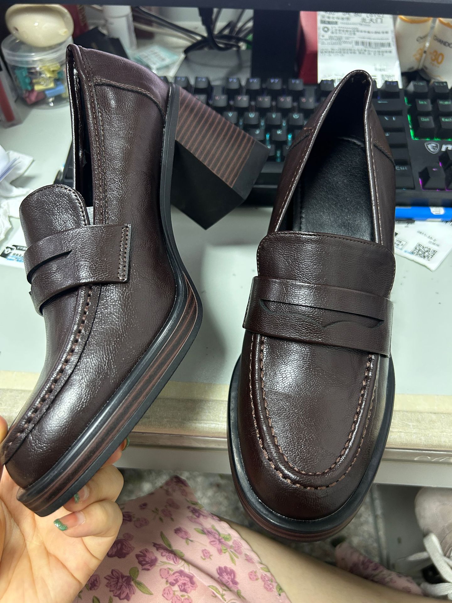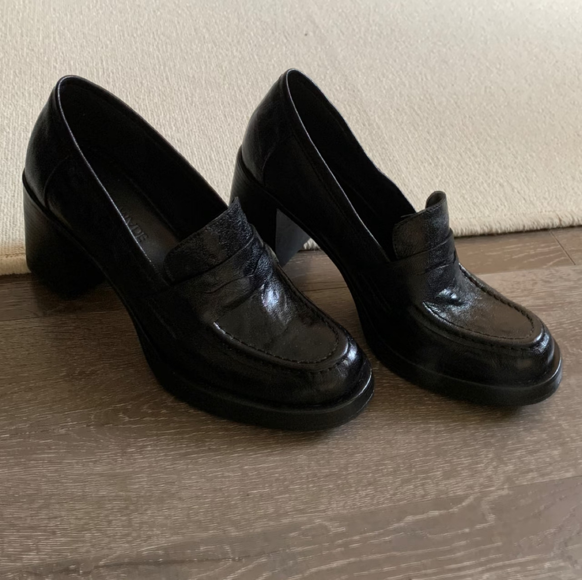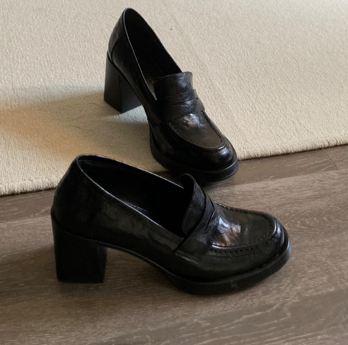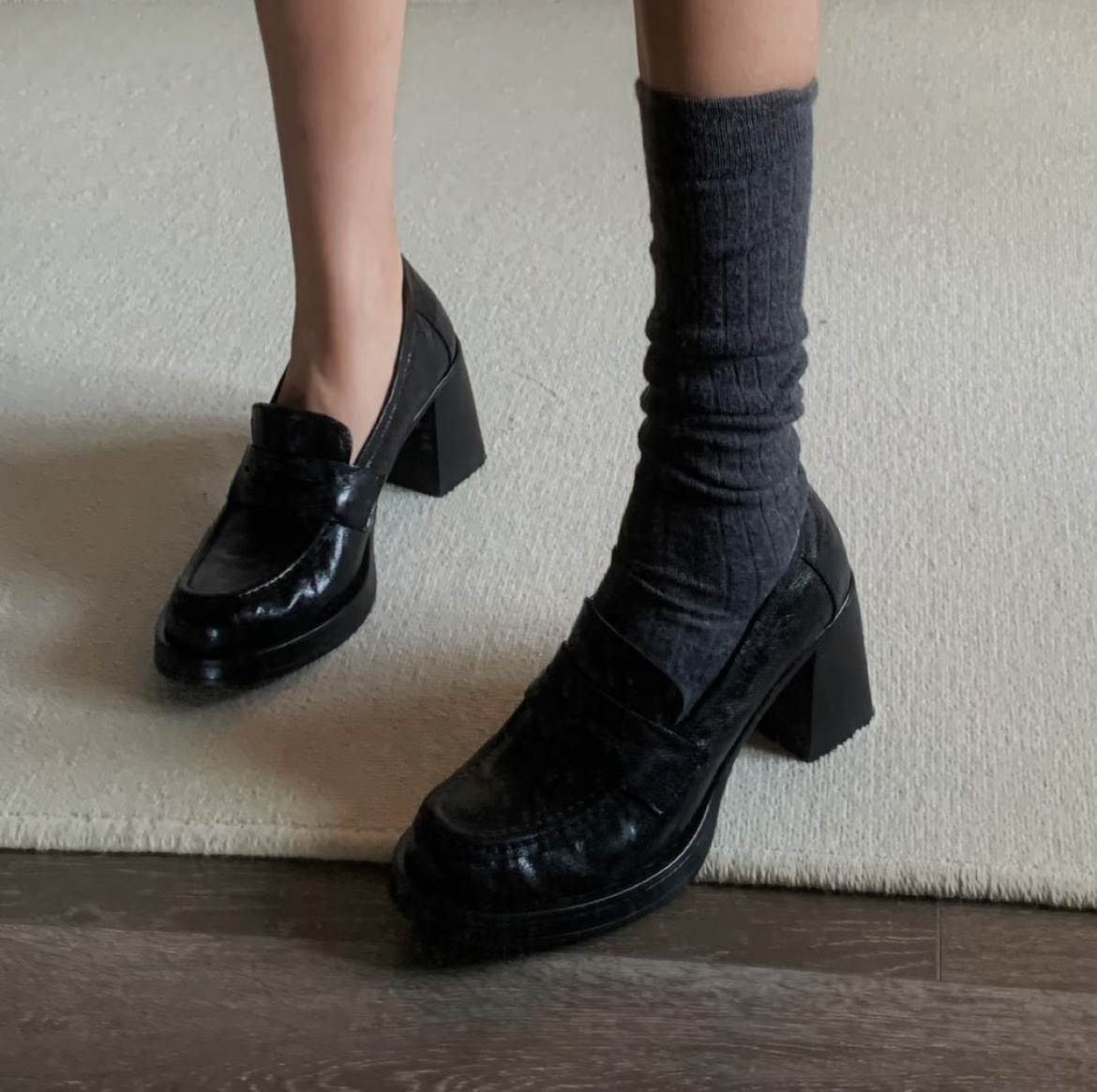 8cm 증가 ~ 통근 레트로 하이힐 여성용 블랙 슬립 온 로퍼 여성용 간단한 영국 스타일 작은 가죽 신발스토어 가기