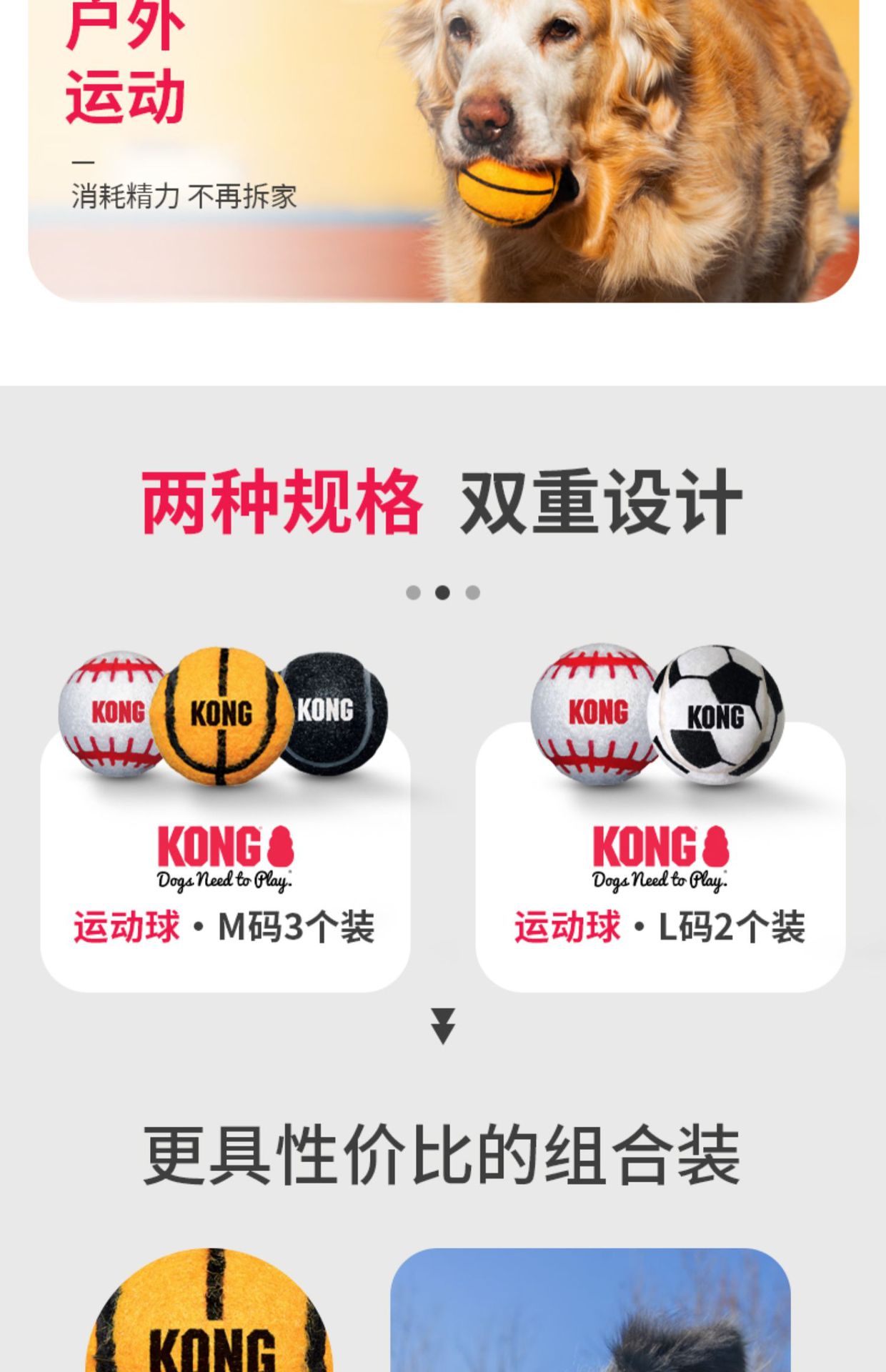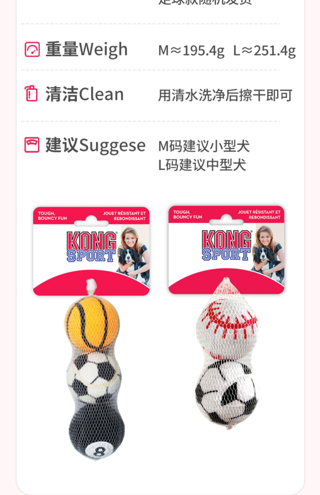 • 스포츠볼 사이즈 M, 3팩, 색상 랜덤 (소형견에게 적합)
