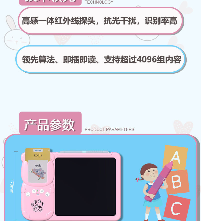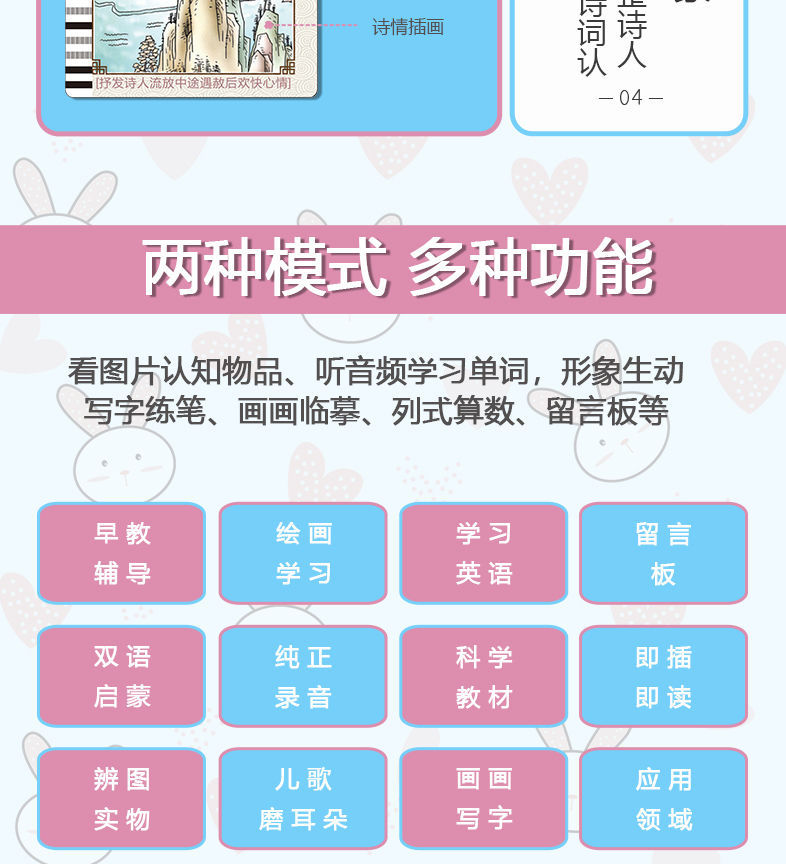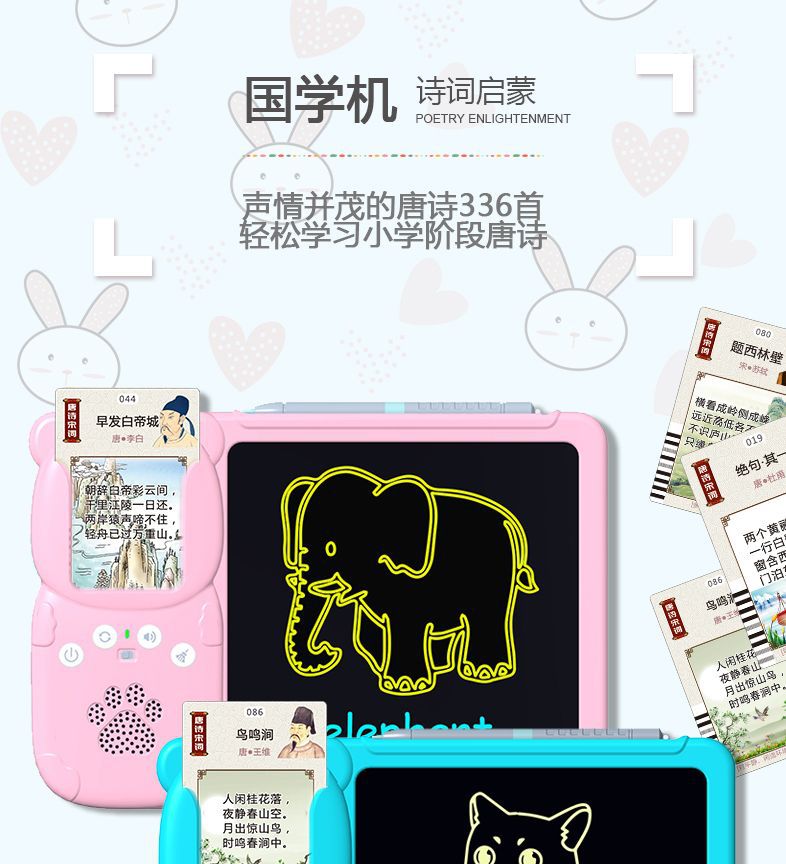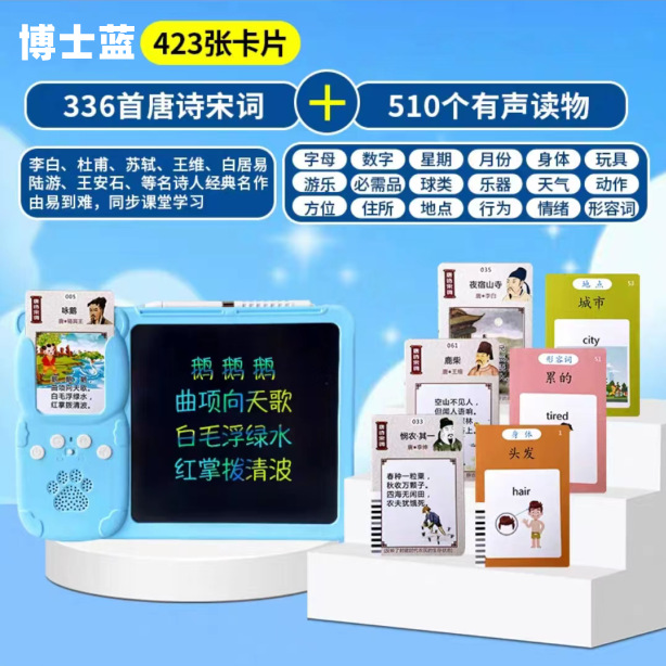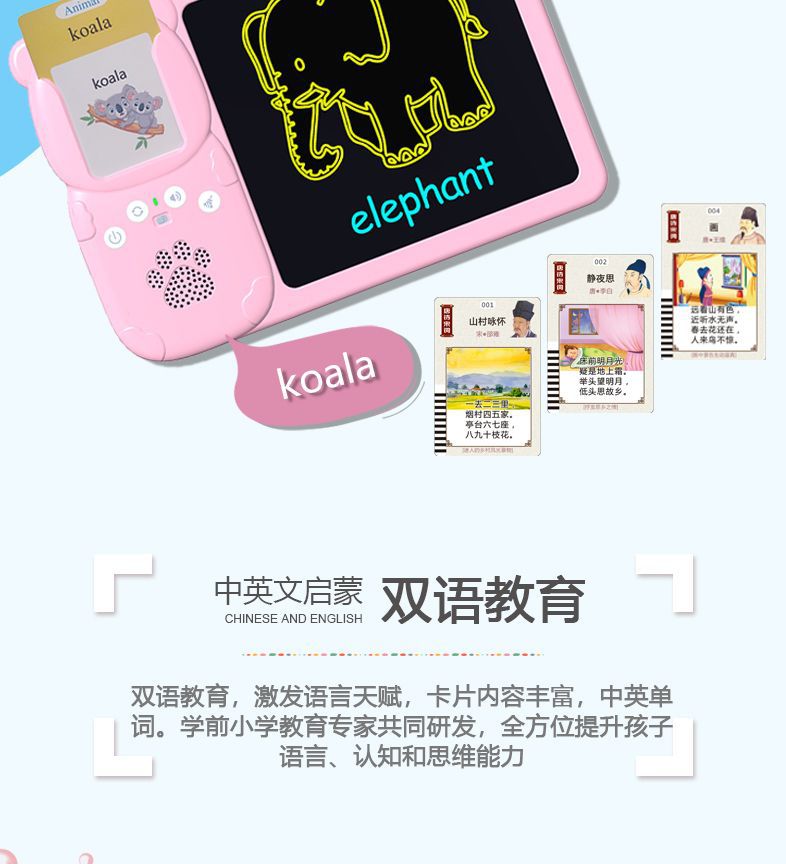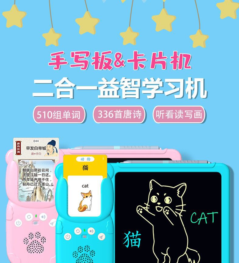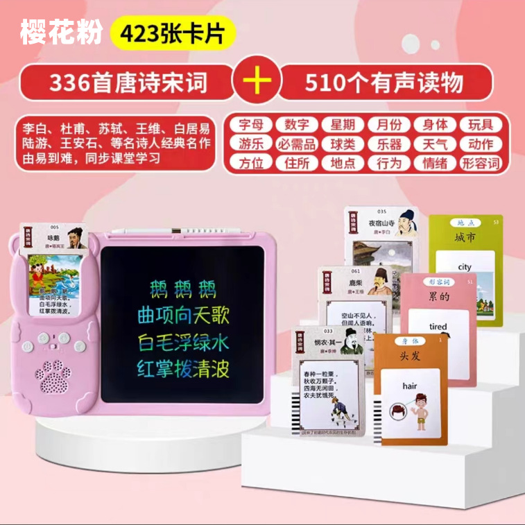 새로운 어린이 조기 교육 카드 기계 중국어 및 영어 계몽 문맹 당나라 시 3 백 2 인 1 필기 보드 학습 기계스토어 가기