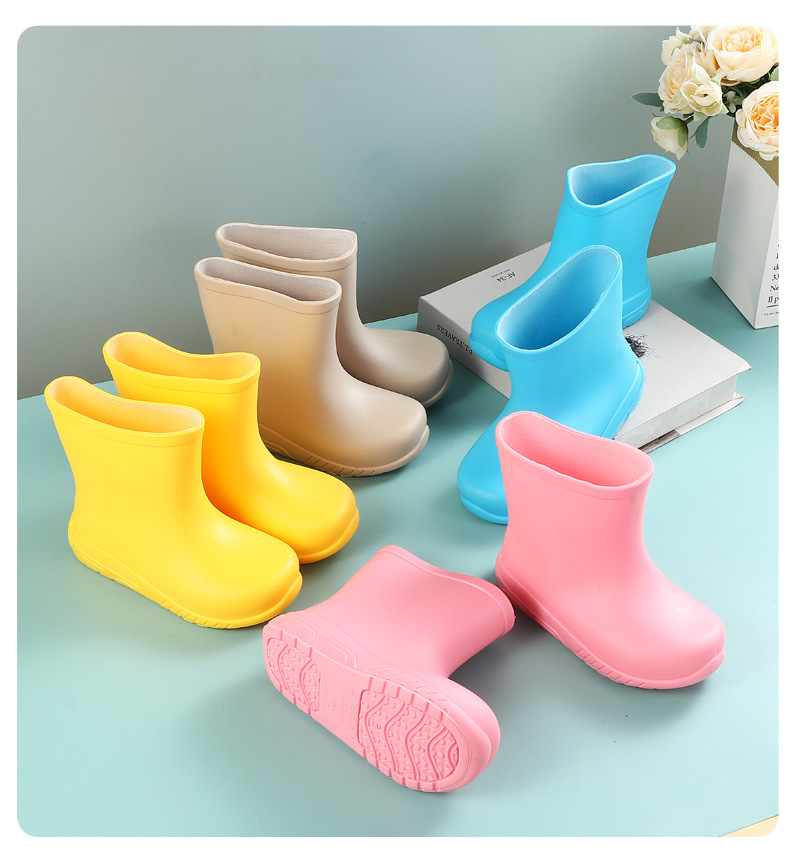로고 없음 순수 노란색 어린이 장화 유치원 아기 장화 미끄럼 방지 어린이 따뜻한 물 신발 어린이 장화스토어 가기