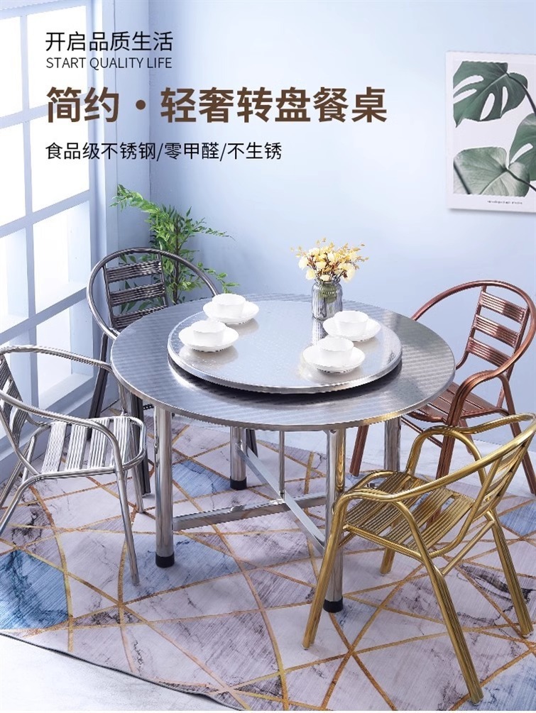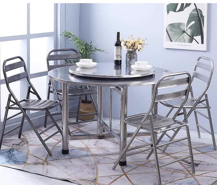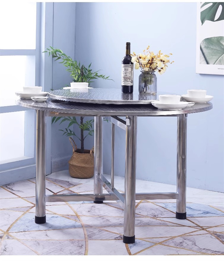304 라운드 테이블 스테인레스 스틸 휴대용 저녁 식사 가구 접는 음식 스톨 라운드 테이블 매점 식당 다이닝 테이블 아마존