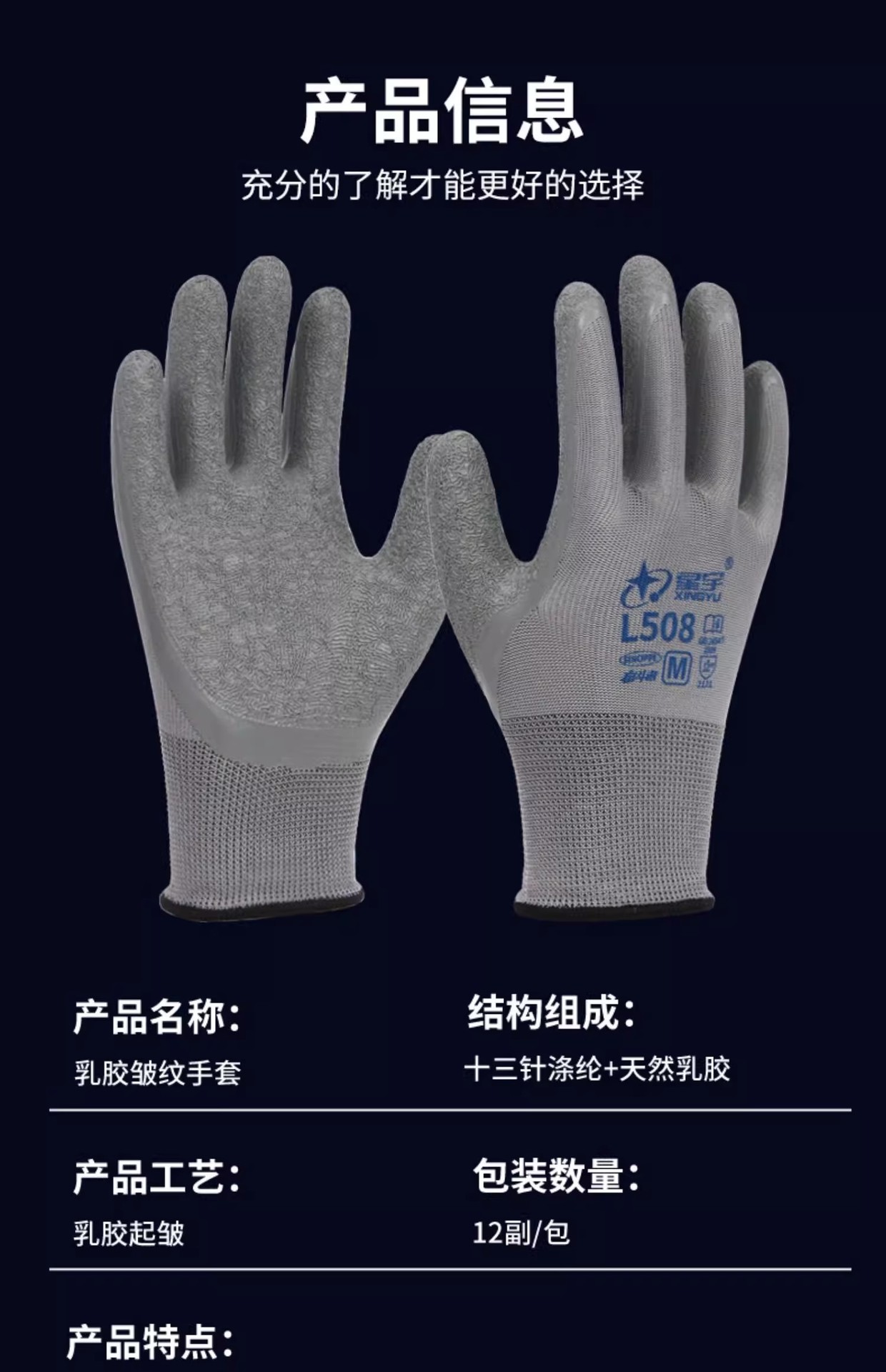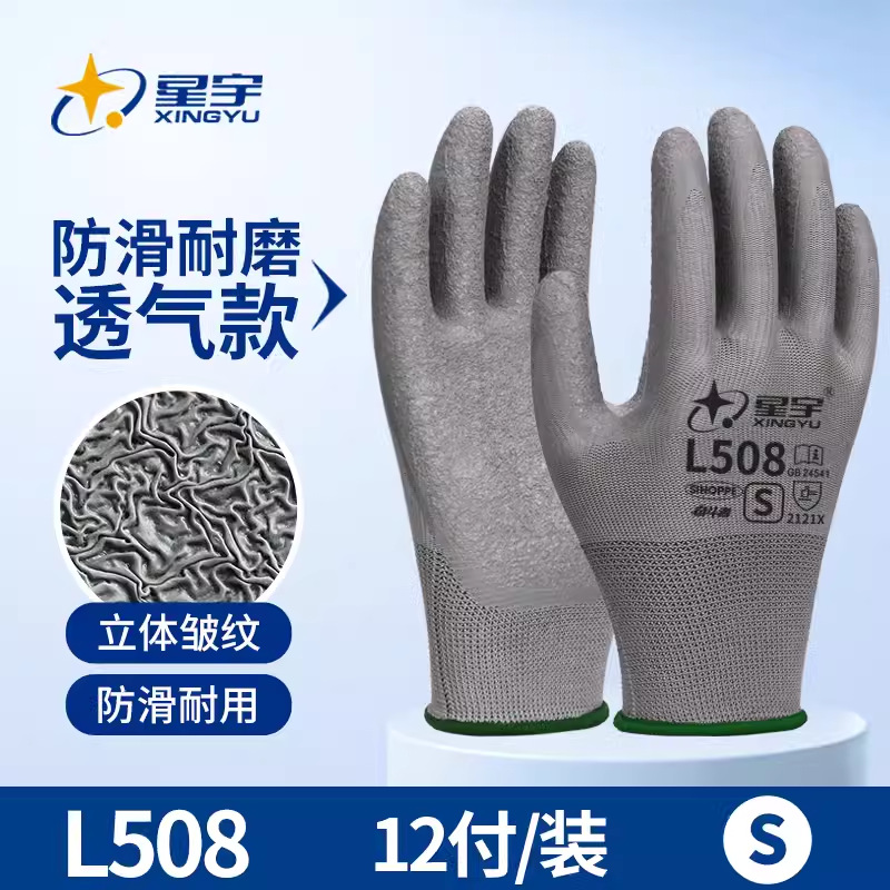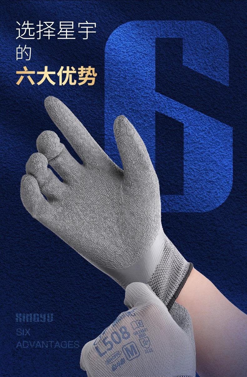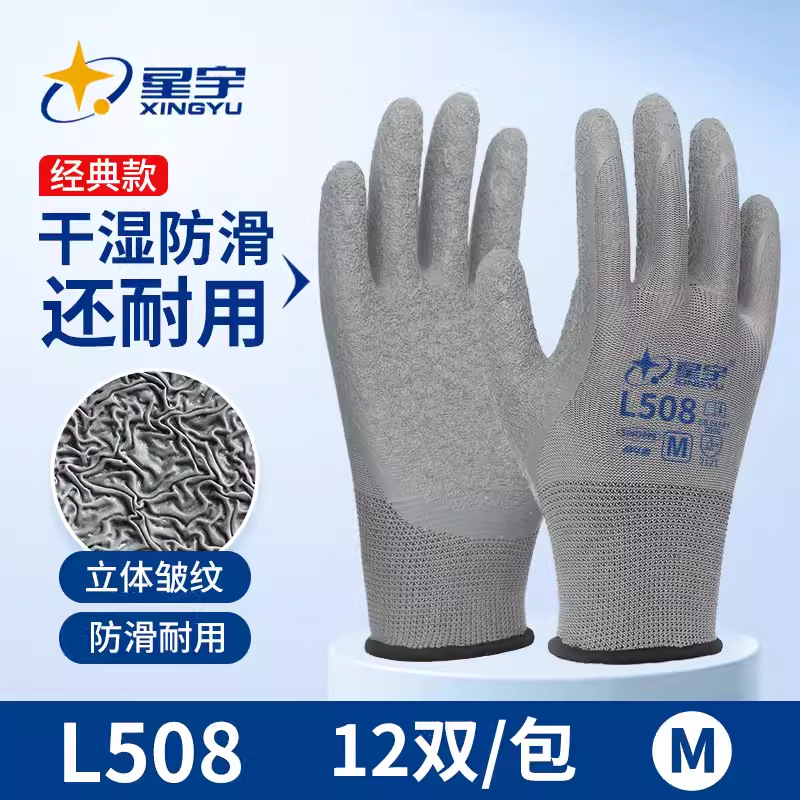 Xingyu 라텍스 L508 미끄럼 방지 노동 보호 장갑 내마모성 보호 통기성 점착 건설 현장 작업 노동 벨트 점착제