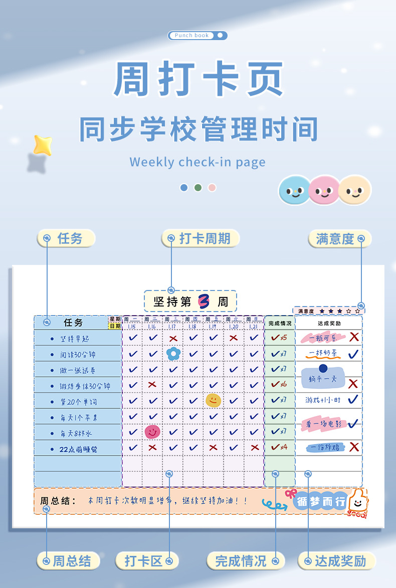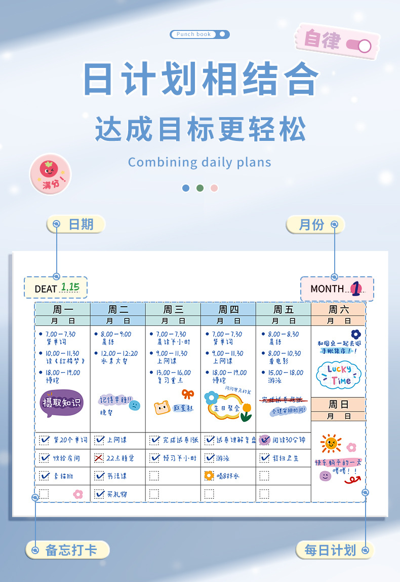 만화 스타일 자기관리 체크인북 휴가 체크인 기기 시간 관리 대학원 입학 계획 일일 계획표 학생 일정표스토어 가기