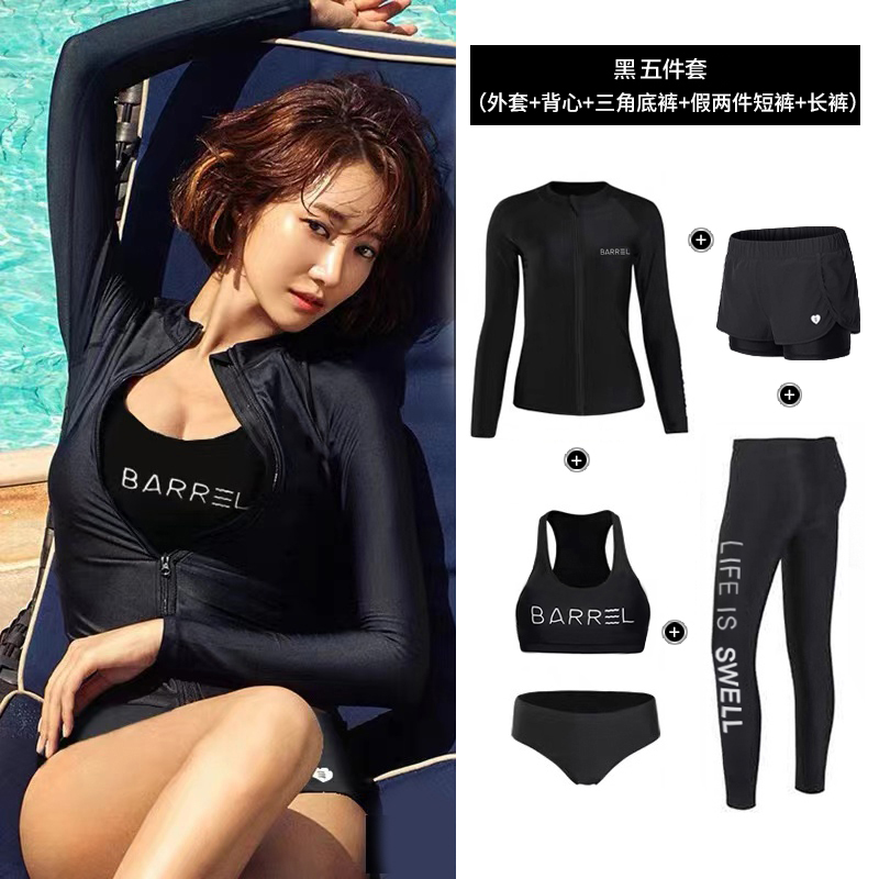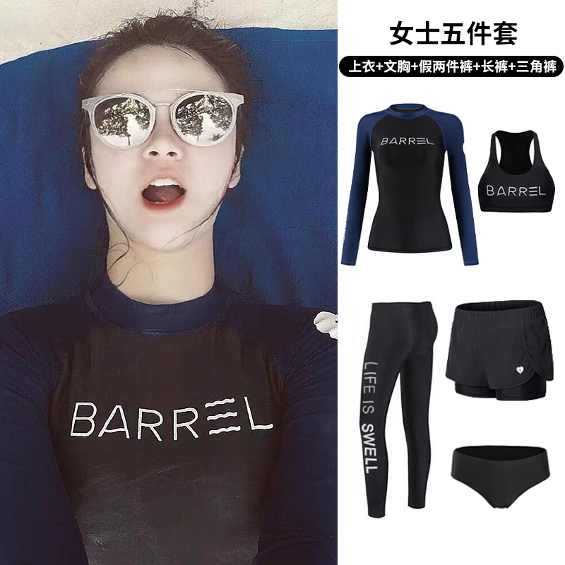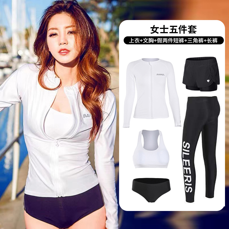 한국 서핑 슈트 여성 스플릿 바지 긴팔 수영복 여성 자외선 차단 속건 잠수복 여성 보수적 해파리 수영복 스노클링
