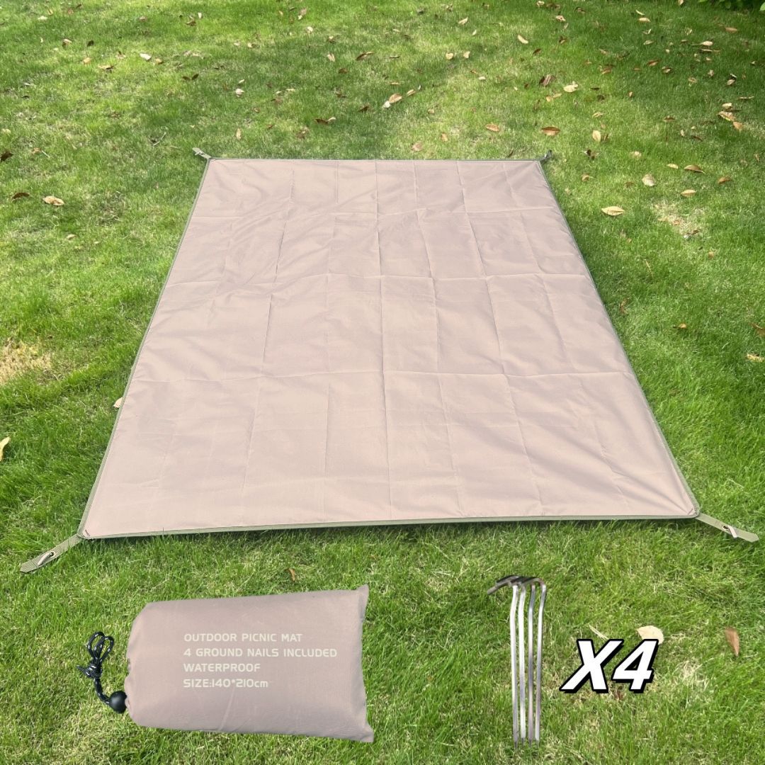 产品组成:1个收纳袋+4个地钉+140*200防潮垫