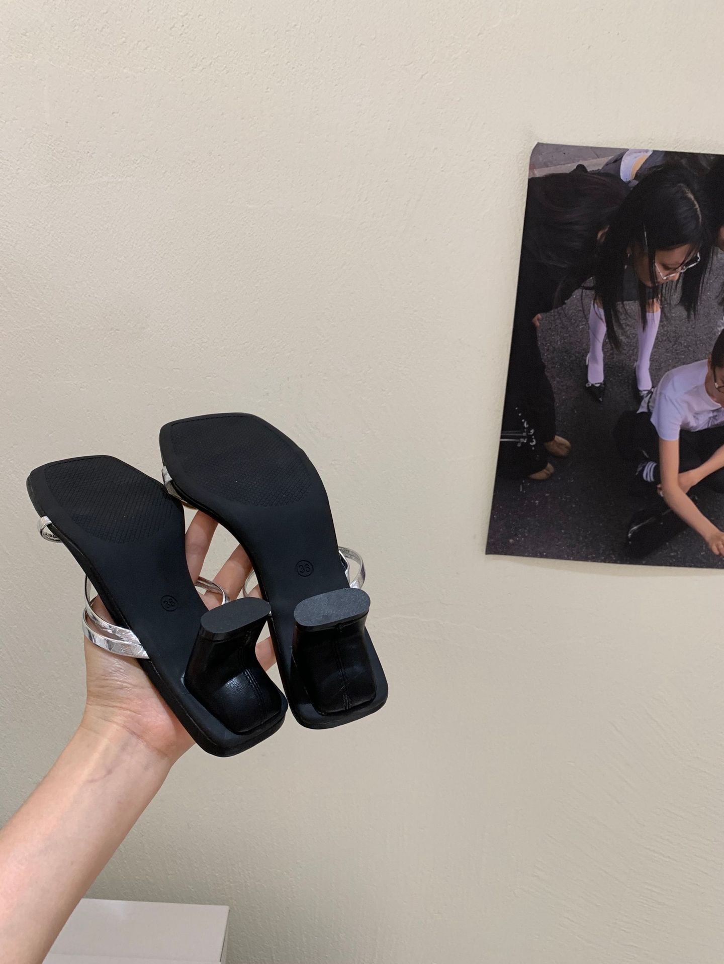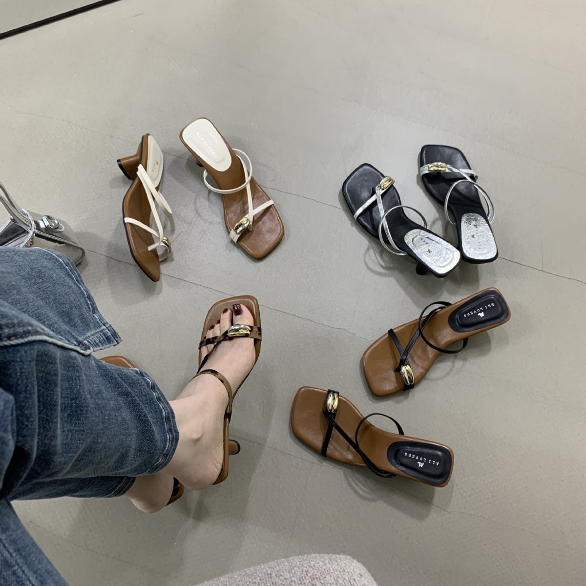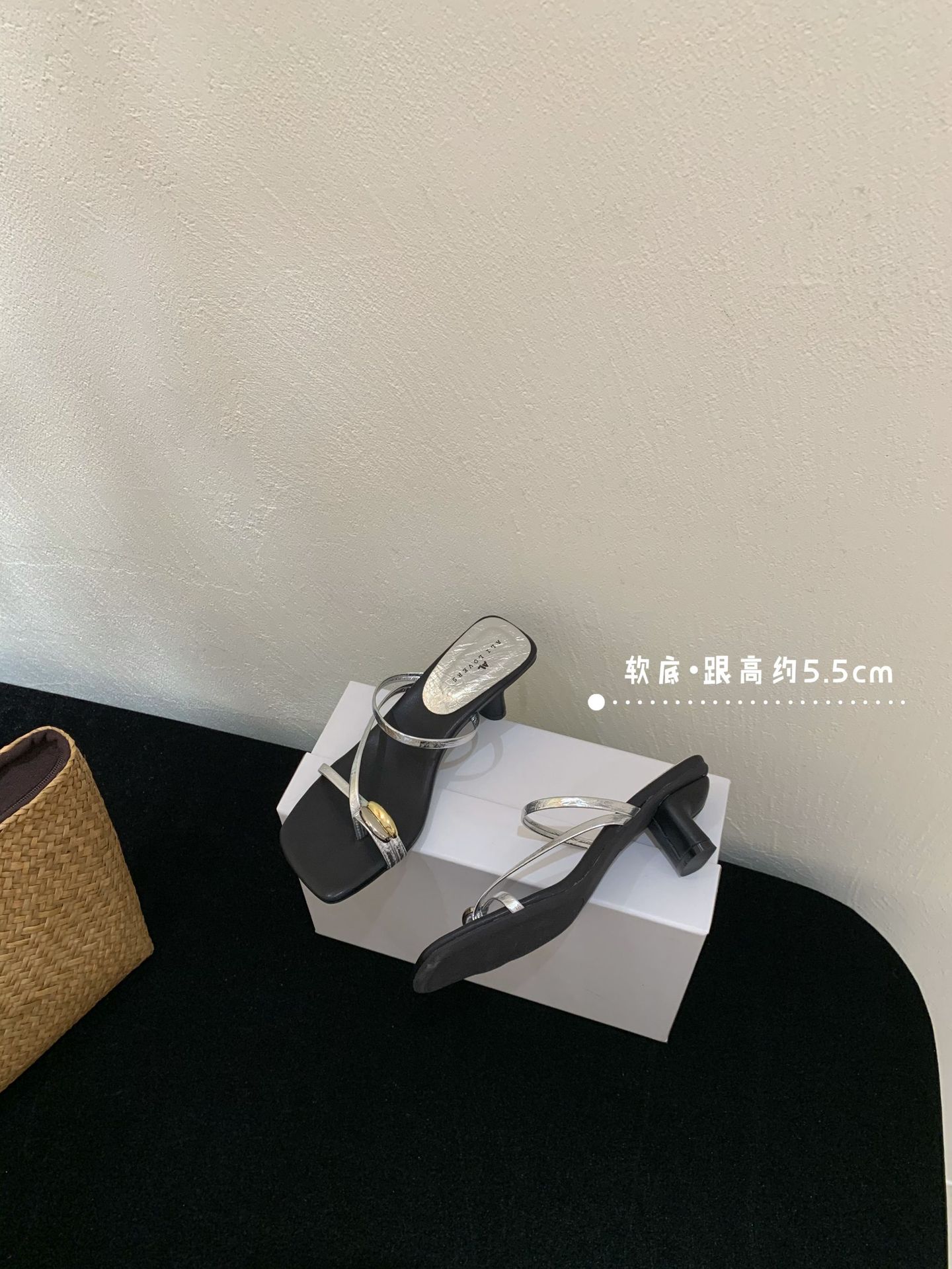 여성을위한 한국 스타일 스퀘어 토 원 스트랩 샌들 2025 여름 새로운 트렌디 스퀘어 토 플립 플롭 두꺼운 힐 하이힐 샌들스토어 가기