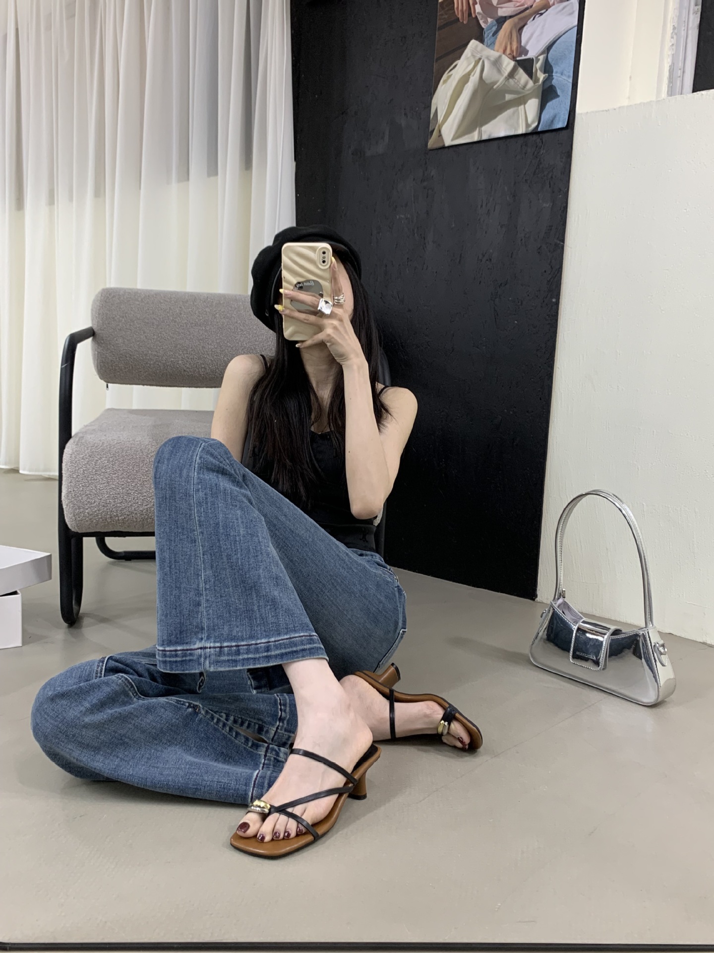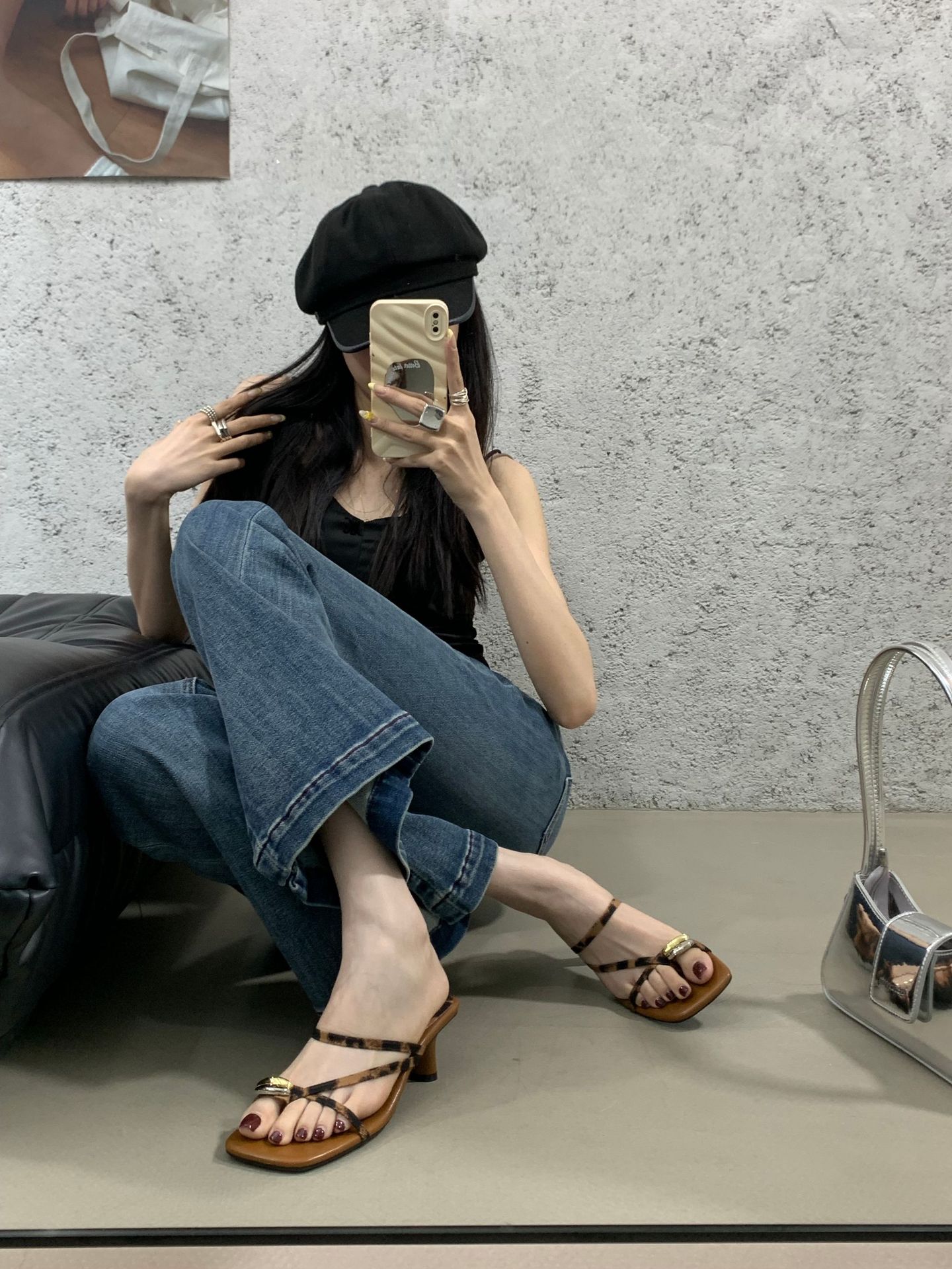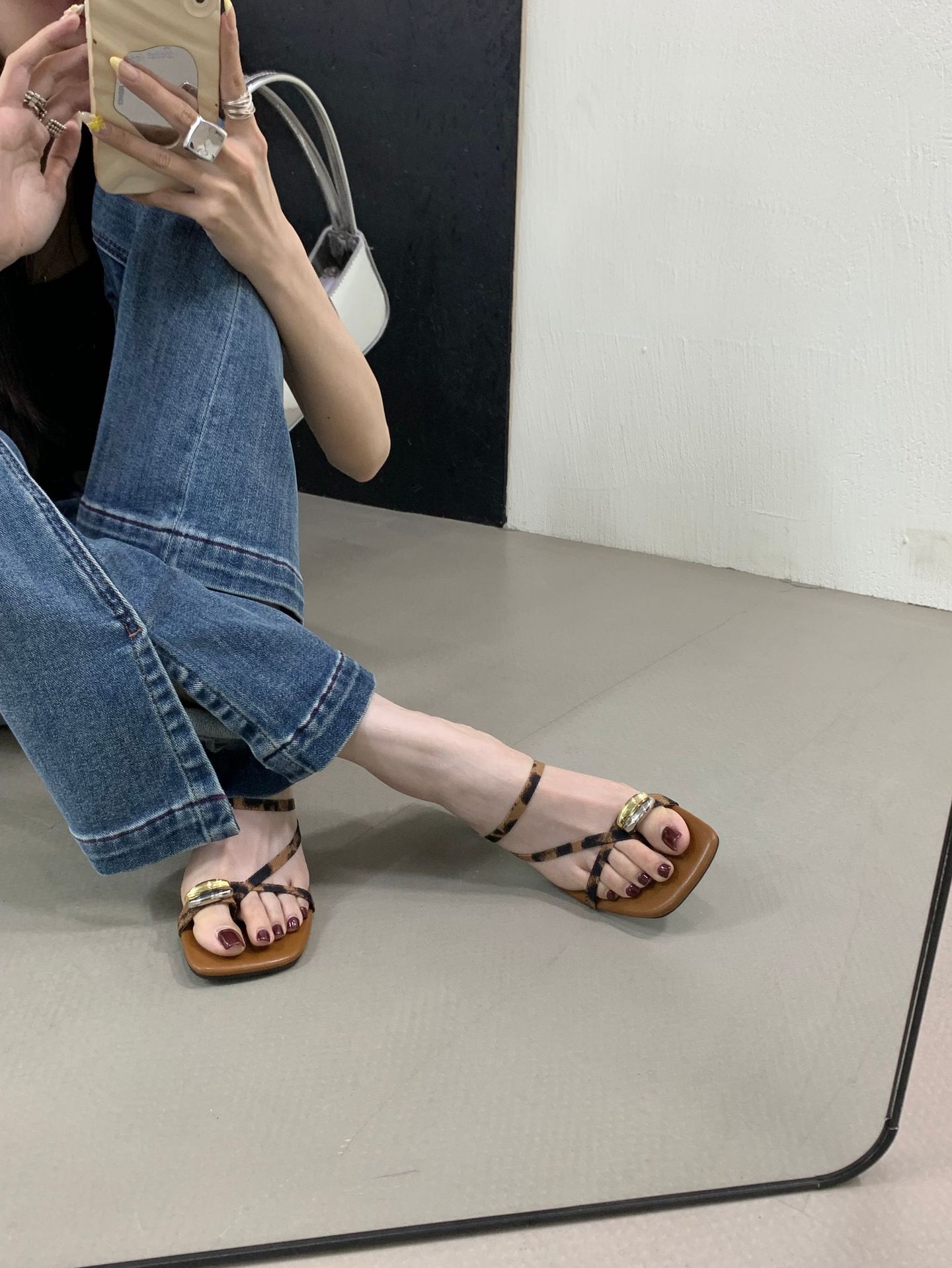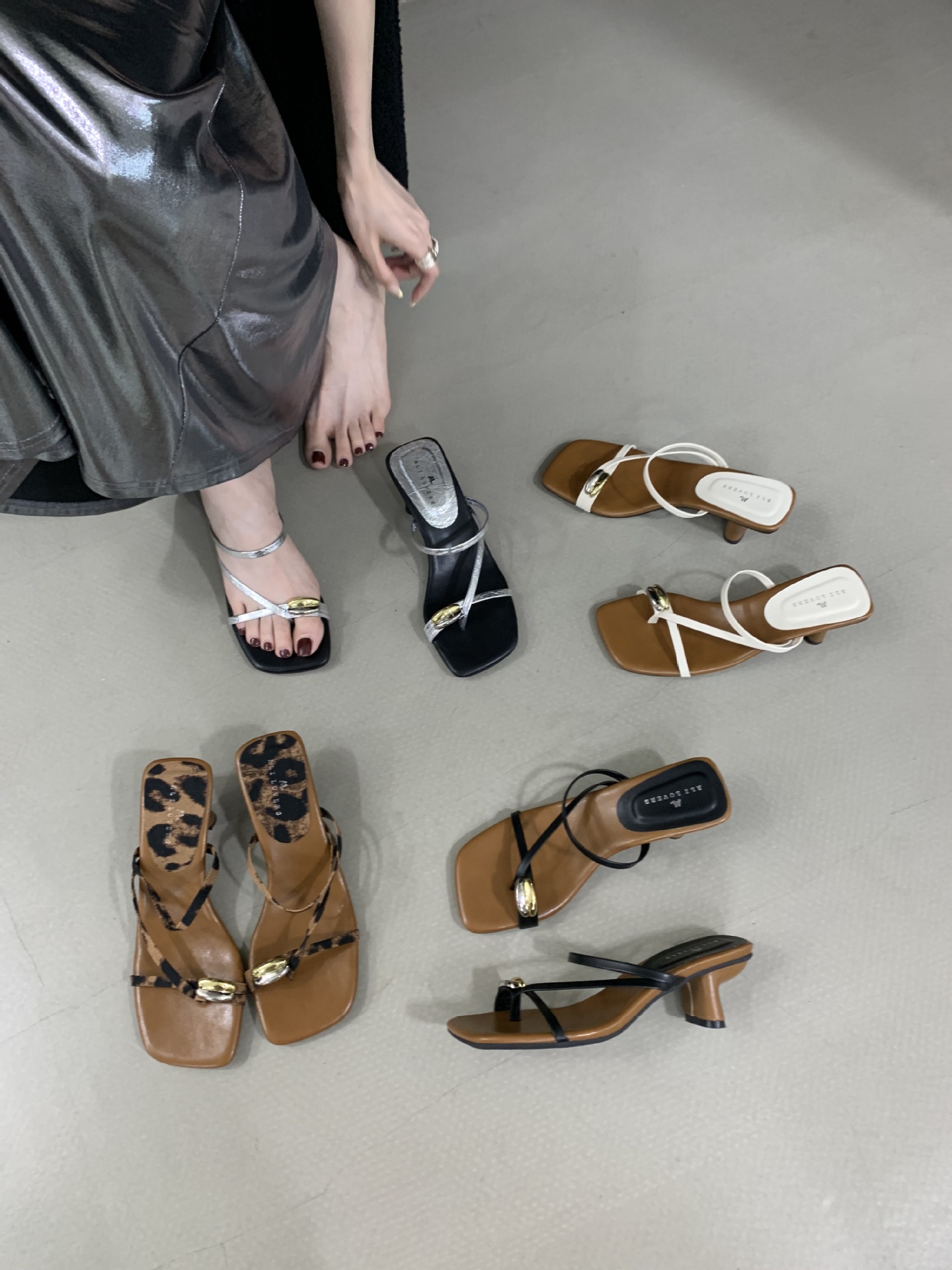 여성을위한 한국 스타일 스퀘어 토 원 스트랩 샌들 2025 여름 새로운 트렌디 스퀘어 토 플립 플롭 두꺼운 힐 하이힐 샌들스토어 가기