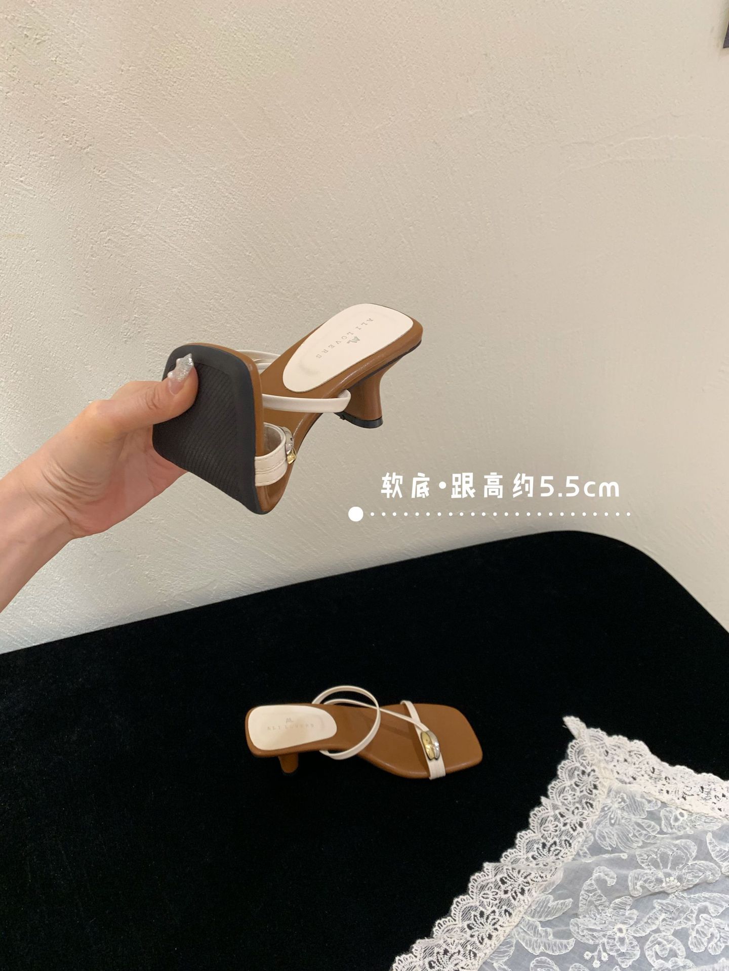 여성을위한 한국 스타일 스퀘어 토 원 스트랩 샌들 2025 여름 새로운 트렌디 스퀘어 토 플립 플롭 두꺼운 힐 하이힐 샌들