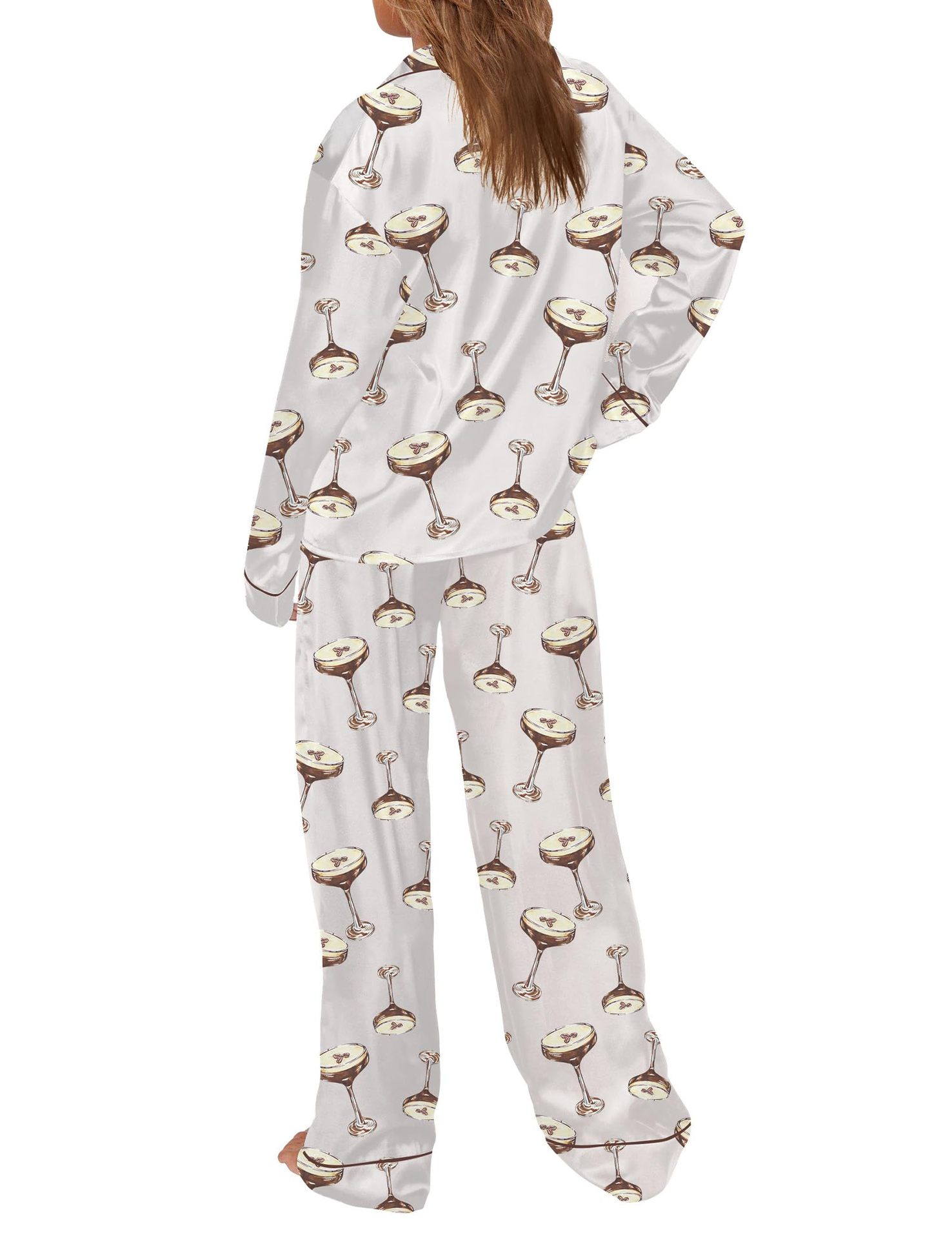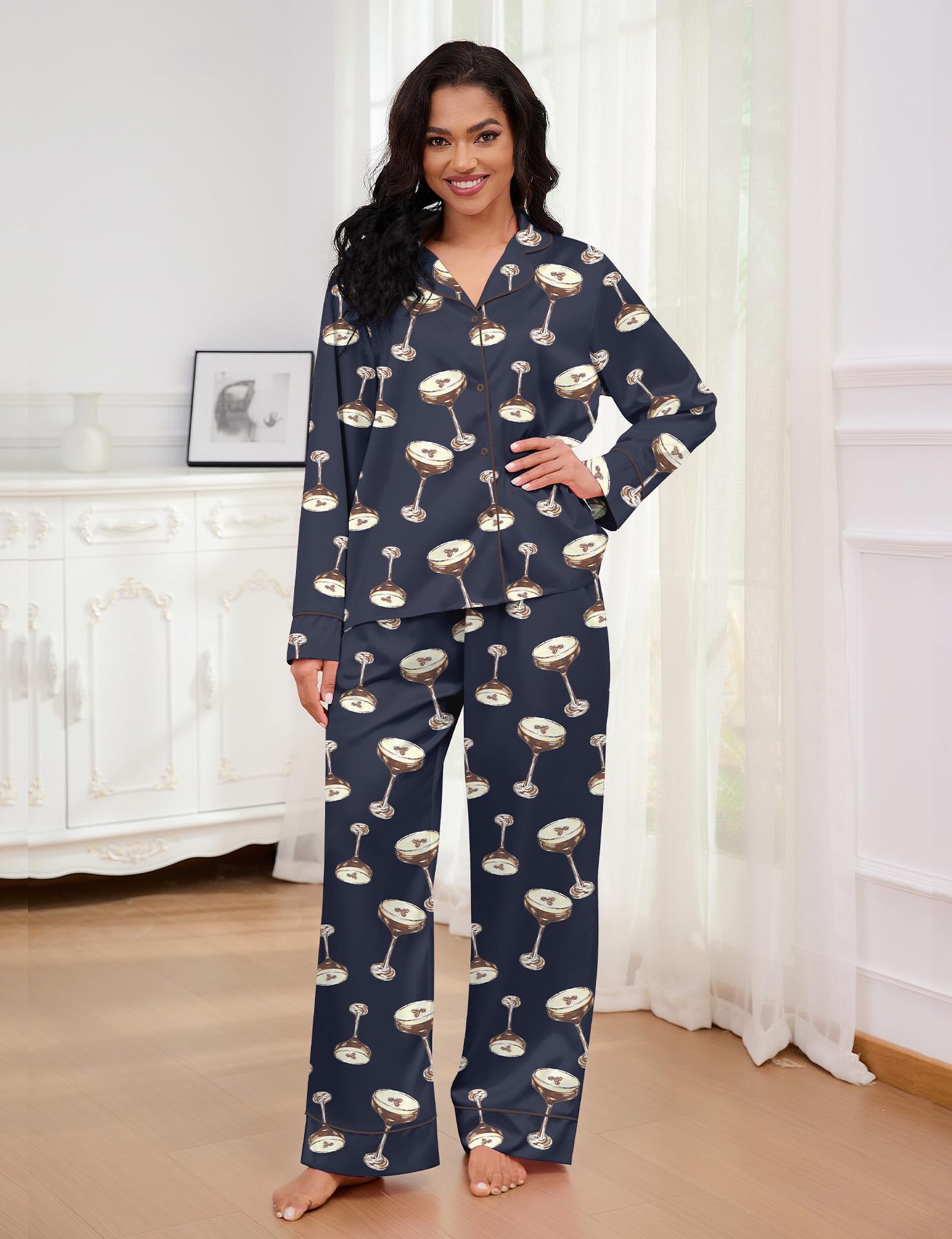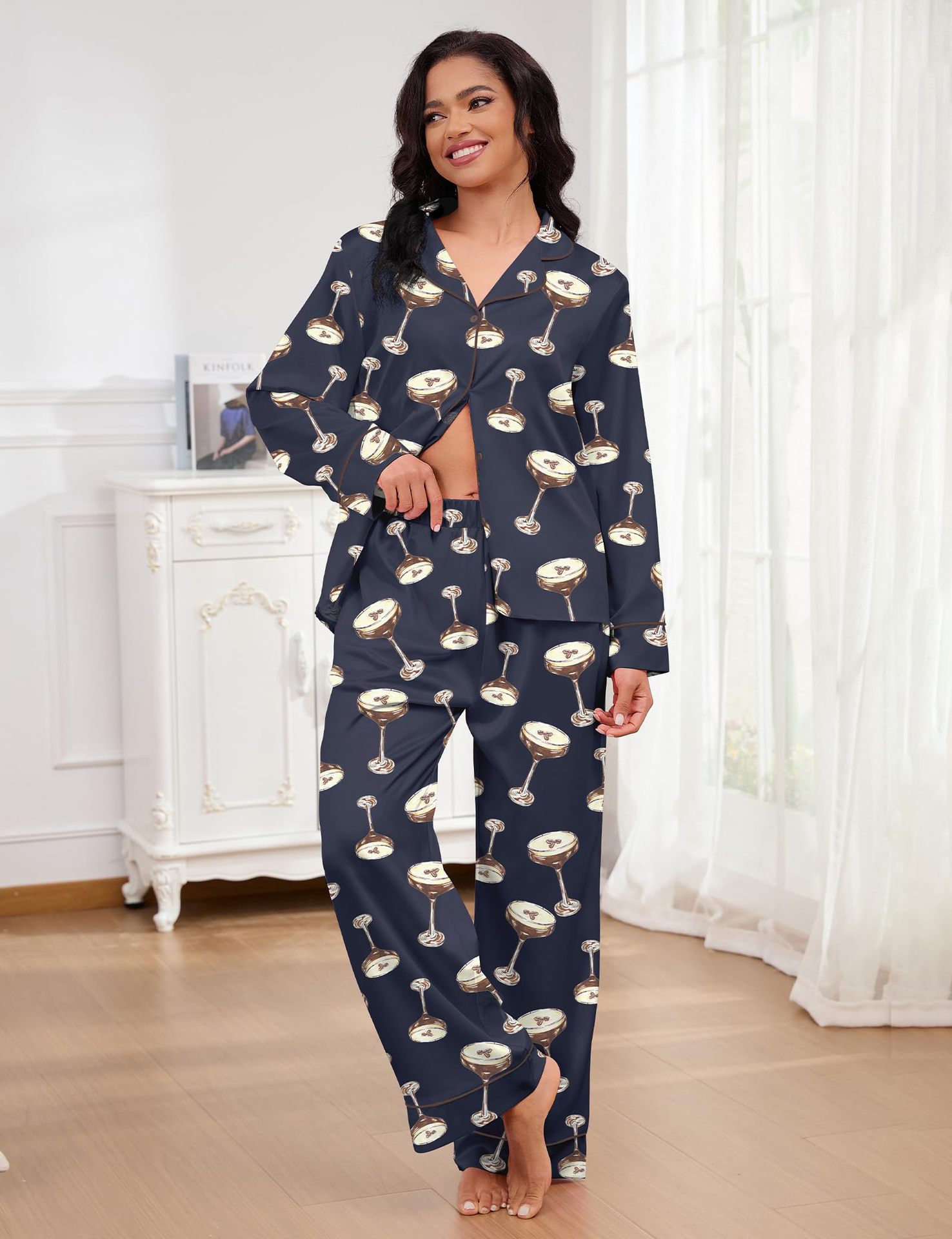 Pijama 재미 있은 여성 그래픽 잠옷 세트 얼음 실크 긴 소매 바지 2 조각 세트 홈웨어스토어 가기