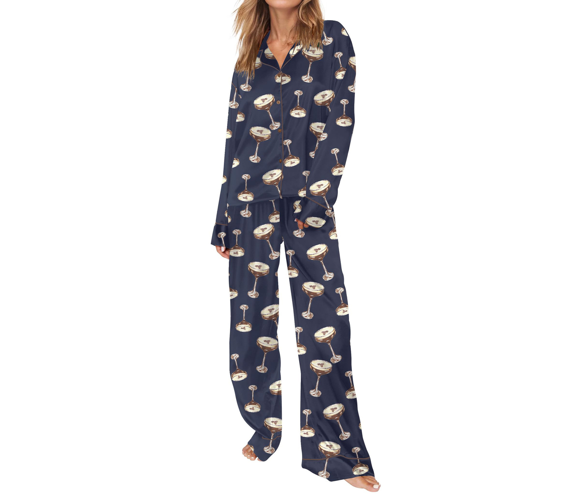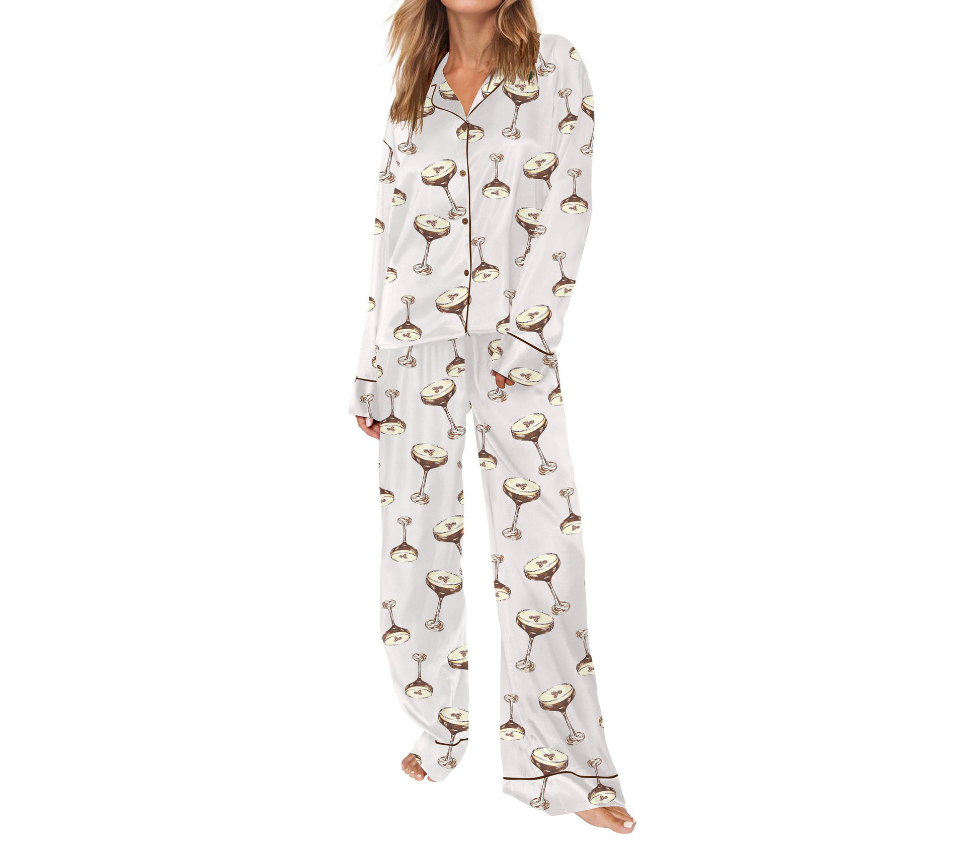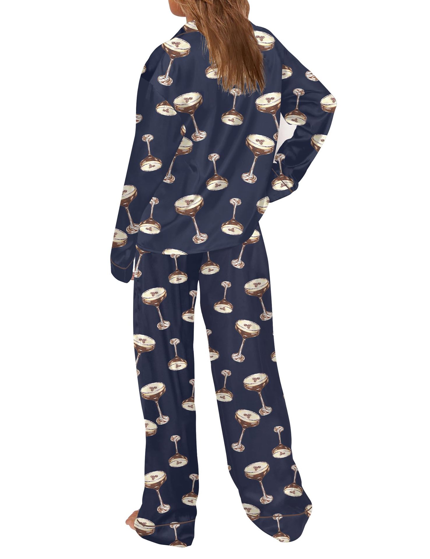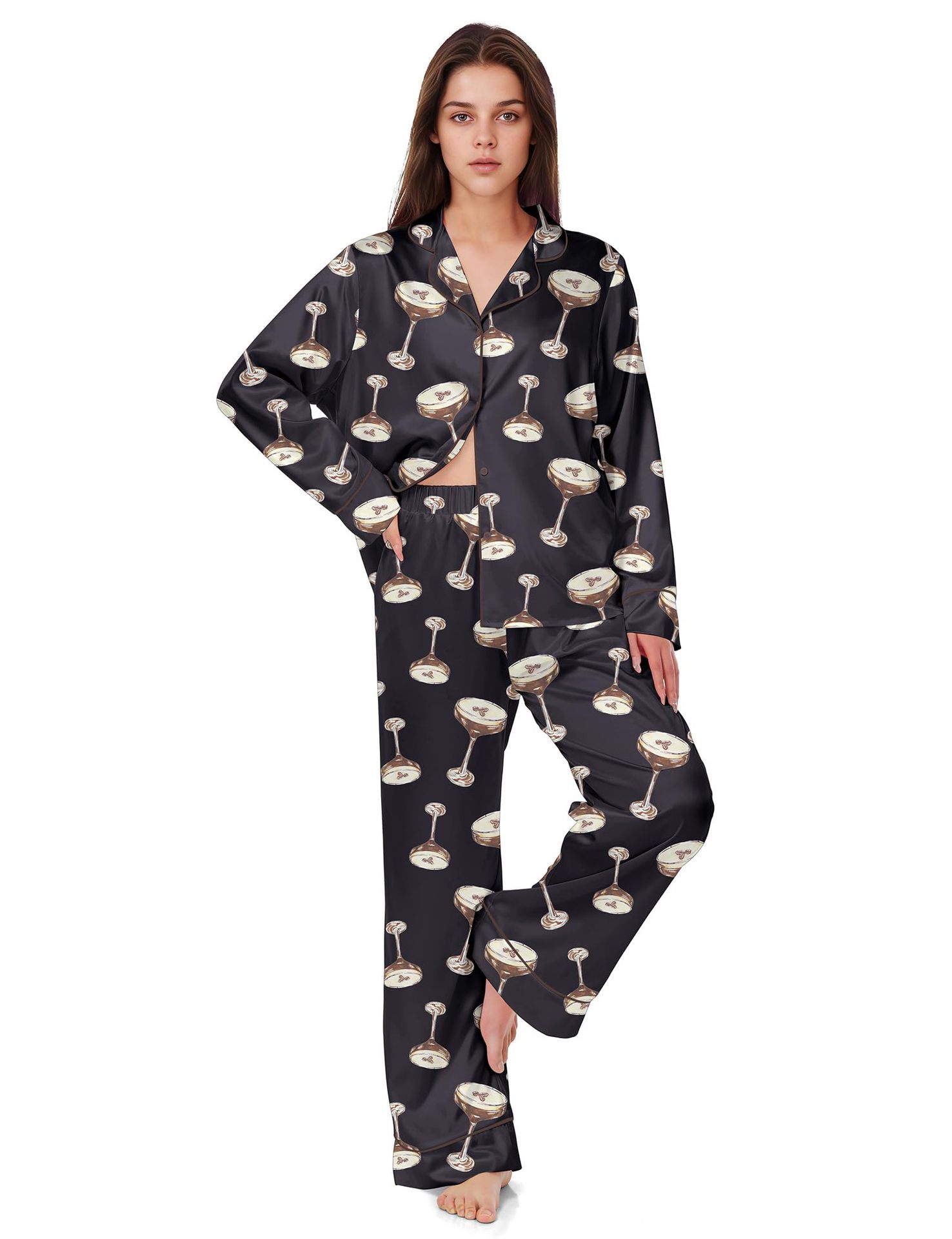 Pijama 재미 있은 여성 그래픽 잠옷 세트 얼음 실크 긴 소매 바지 2 조각 세트 홈웨어스토어 가기