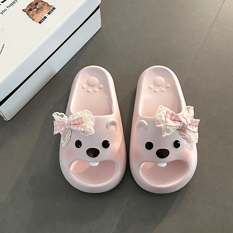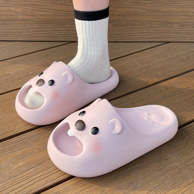 집에서 여름을 보내는 소녀들을 위한 귀여운 곰 샌들, 새로운 겉옷, 여성용 만화 경량 부드러운 밑창 슬리퍼, 실내 샌들